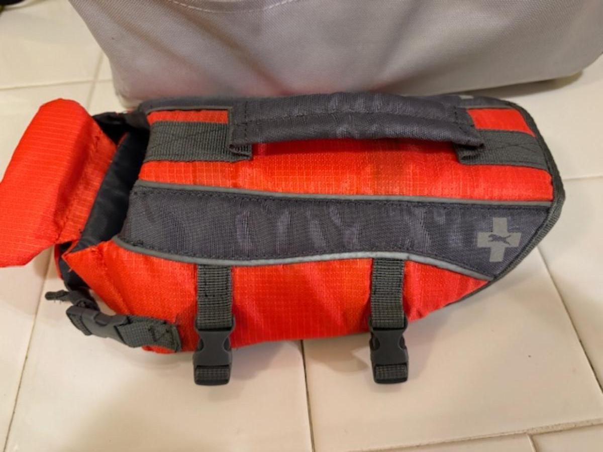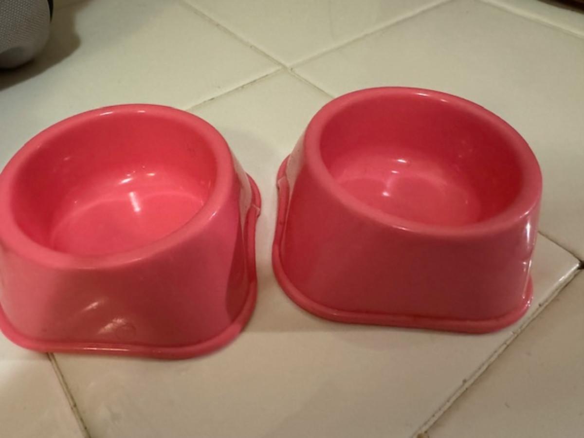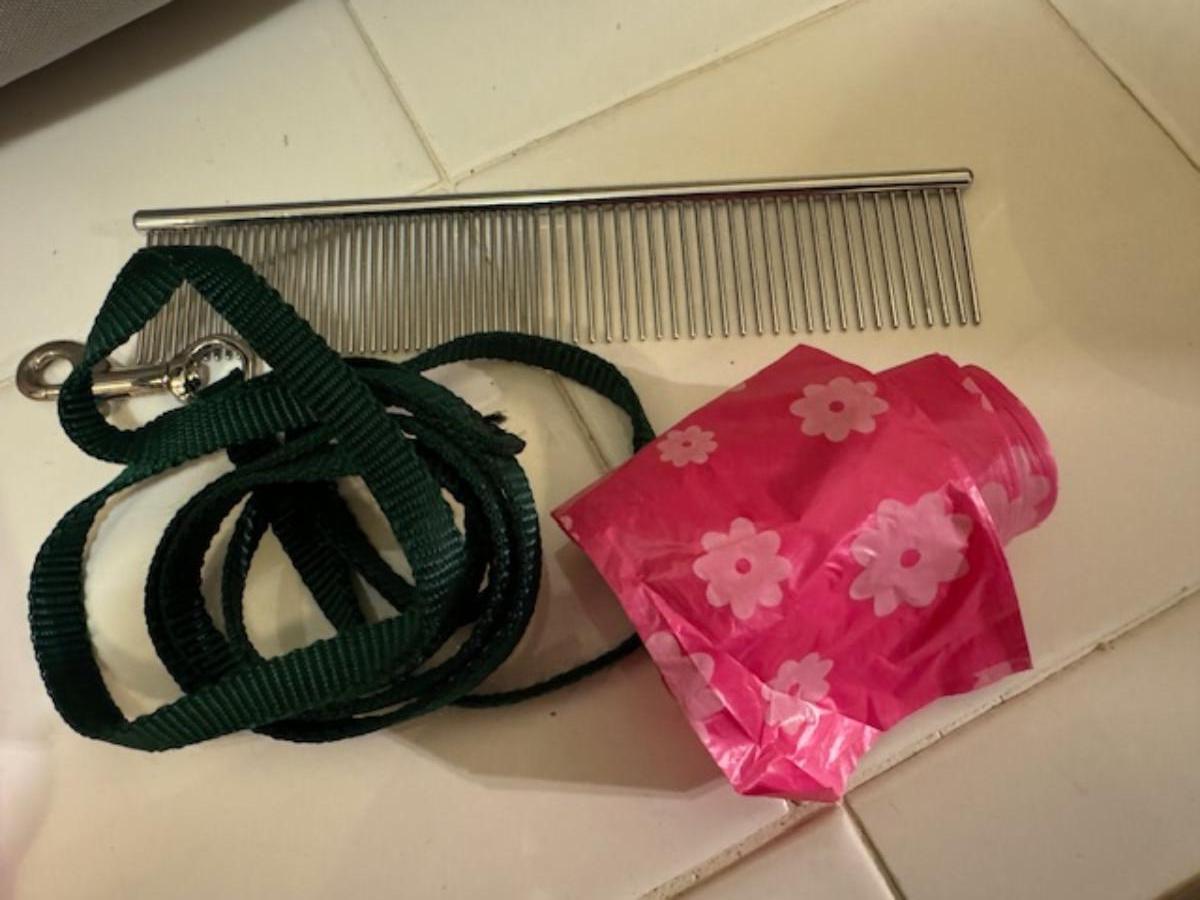 2 small food/water bowls 1 as is, Flexi 10' cord leash retractable, heart sweater, life vest, booster seat for vehicle, 2 doggie diapers, 1 coat, comb, leash, poop pickup bags.