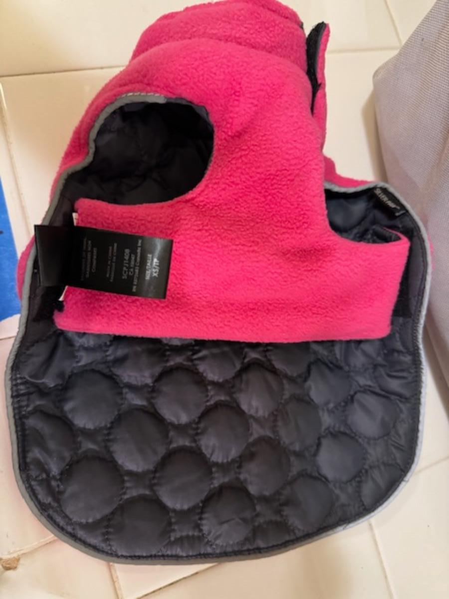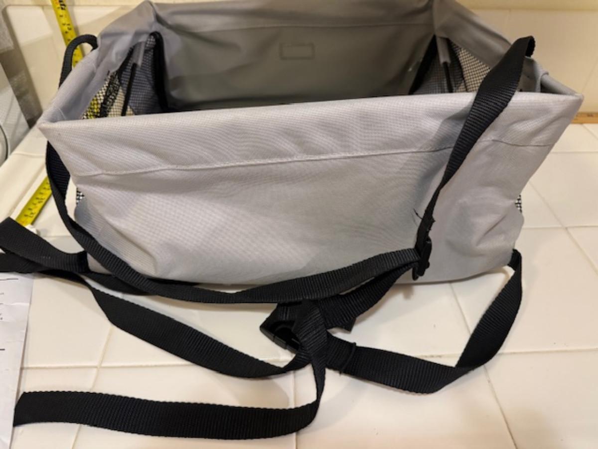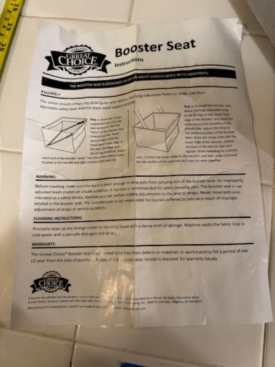 2 small food/water bowls 1 as is, Flexi 10' cord leash retractable, heart sweater, life vest, booster seat for vehicle, 2 doggie diapers, 1 coat, comb, leash, poop pickup bags.