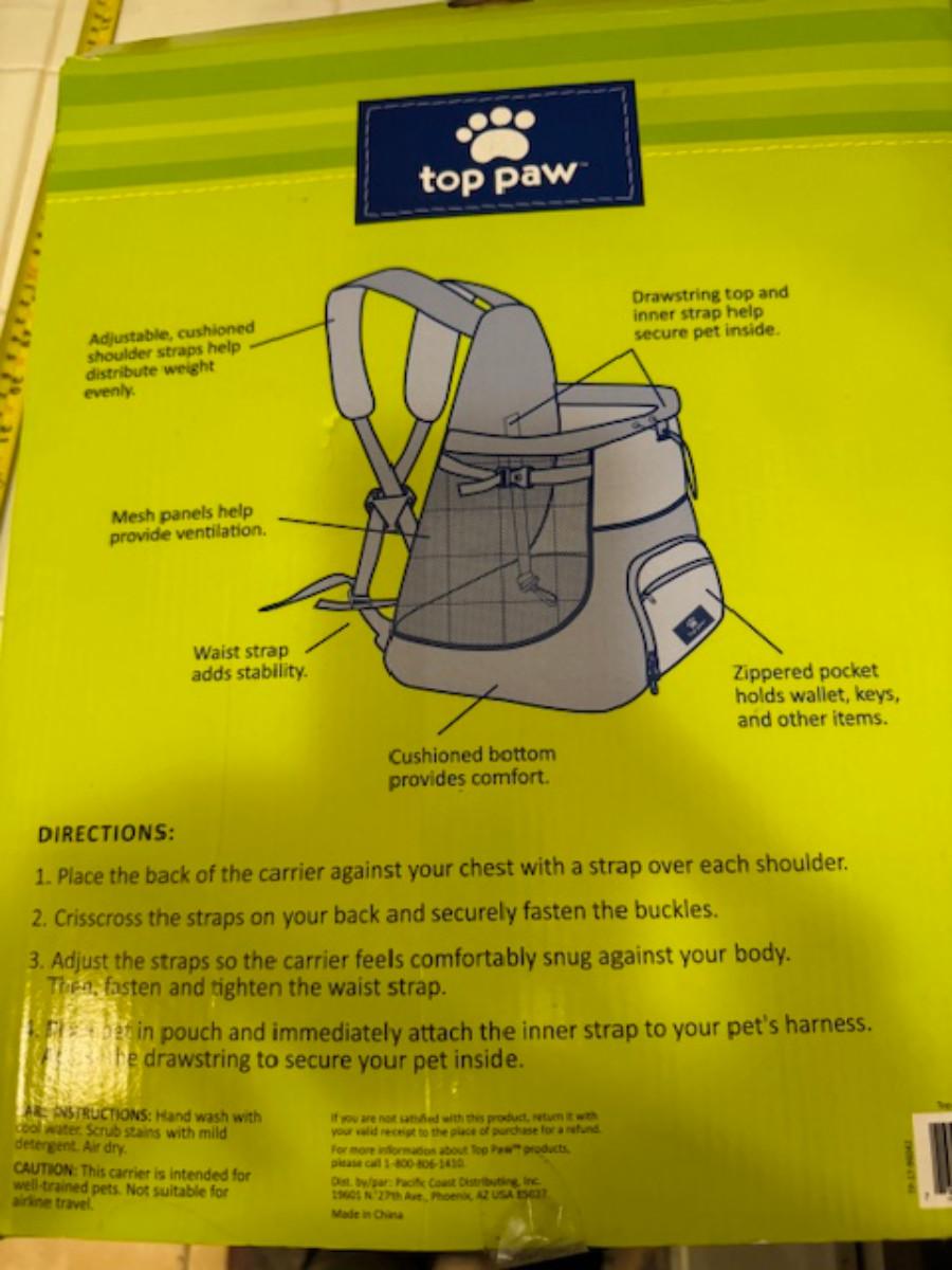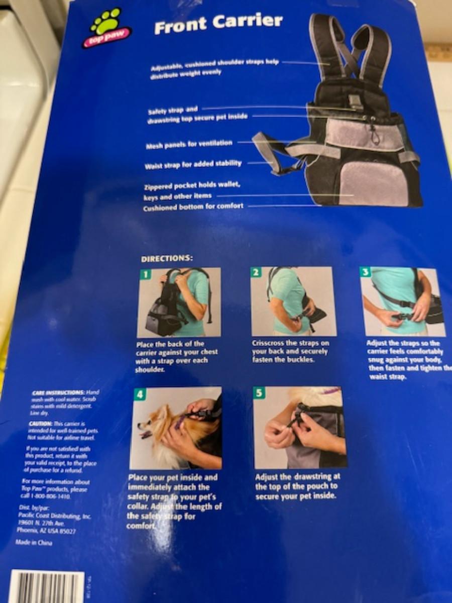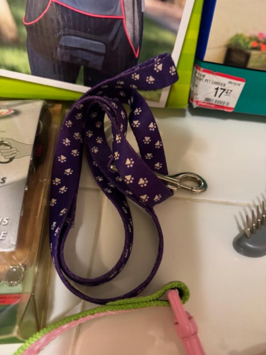 2x Top Paw front carrier up to 20lbs, Flexi retractable leash up to 44 lbs, matching collar and leash, dog grooming tool, dog leash.