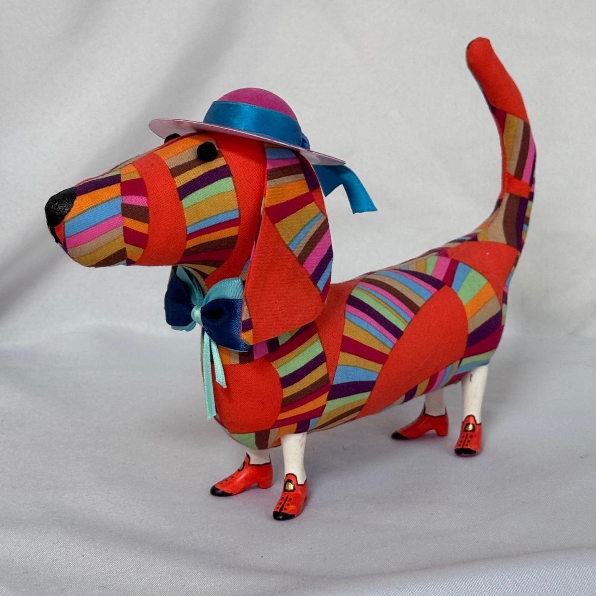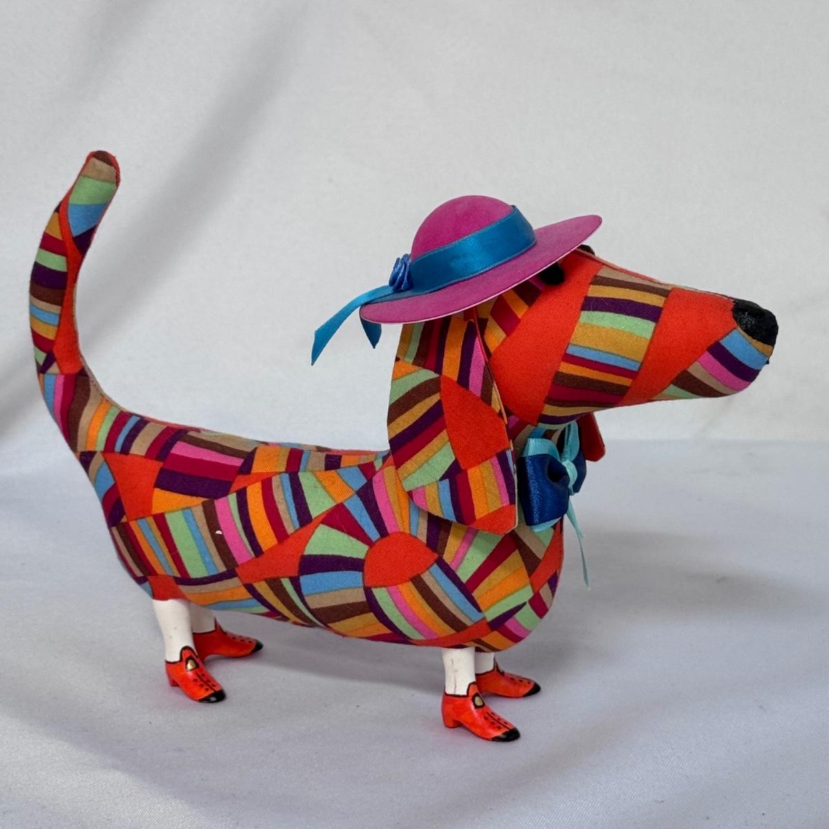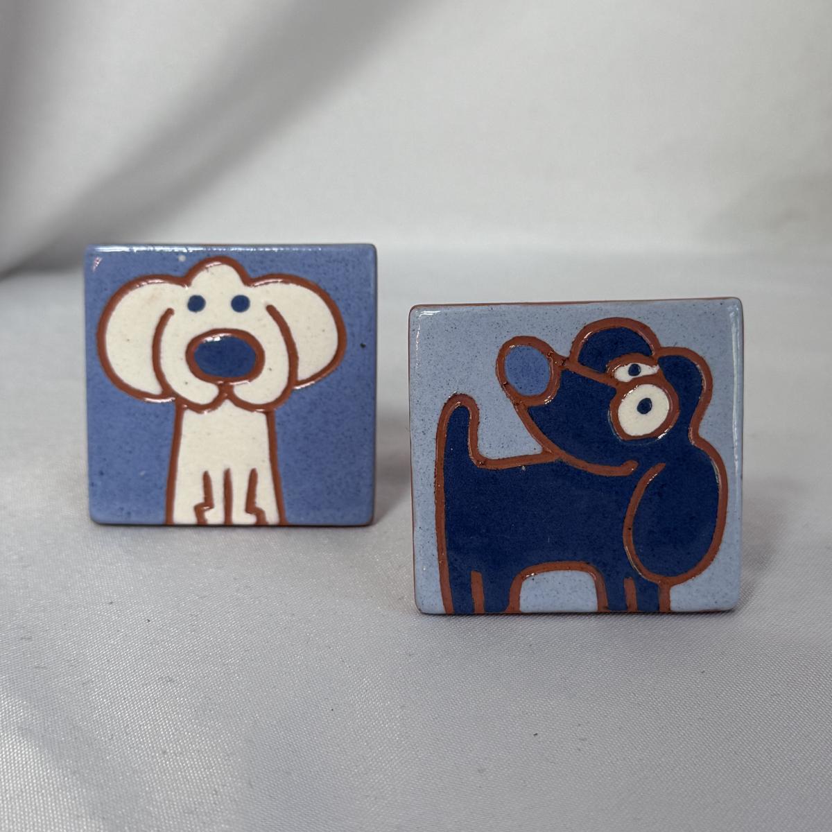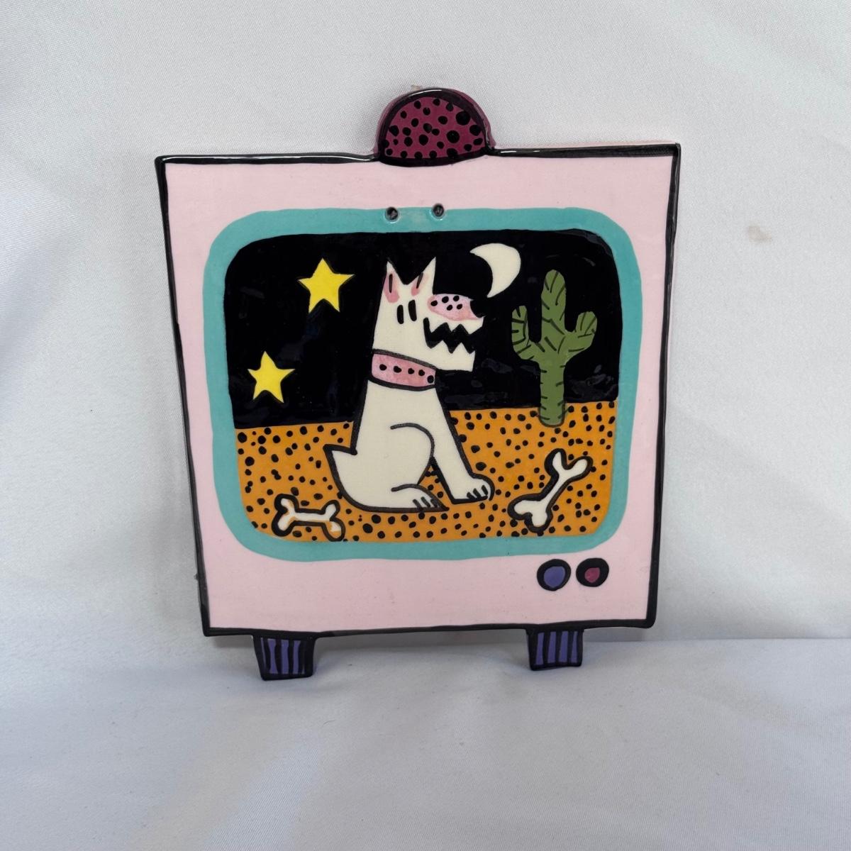 This lot was created for the dog lovers out there. You’ll find one adorable dog clock with a wagging tail, one ceramic dog folk art, one wooden hanging dog sign that reads “dinner,” and one stuffed dog figurine in vibrant colors. You’ll also find one blue metal dog sculpture and two small ceramic tiles with dogs painted on the front. The dog clock has been tested and works. It takes one AA battery to operate. The largest piece is the clock that measures 6.5” x 11” x 1”H. Shipping available.