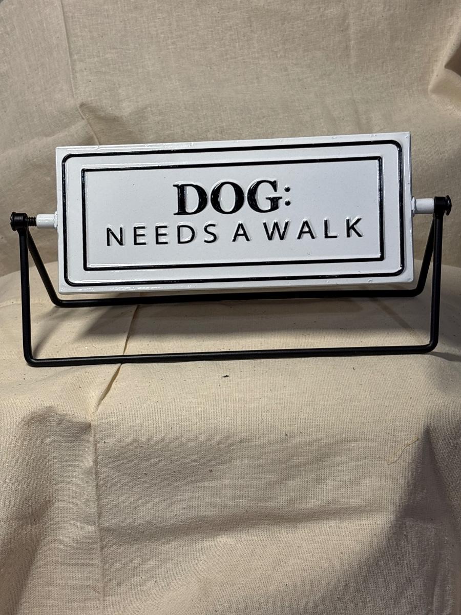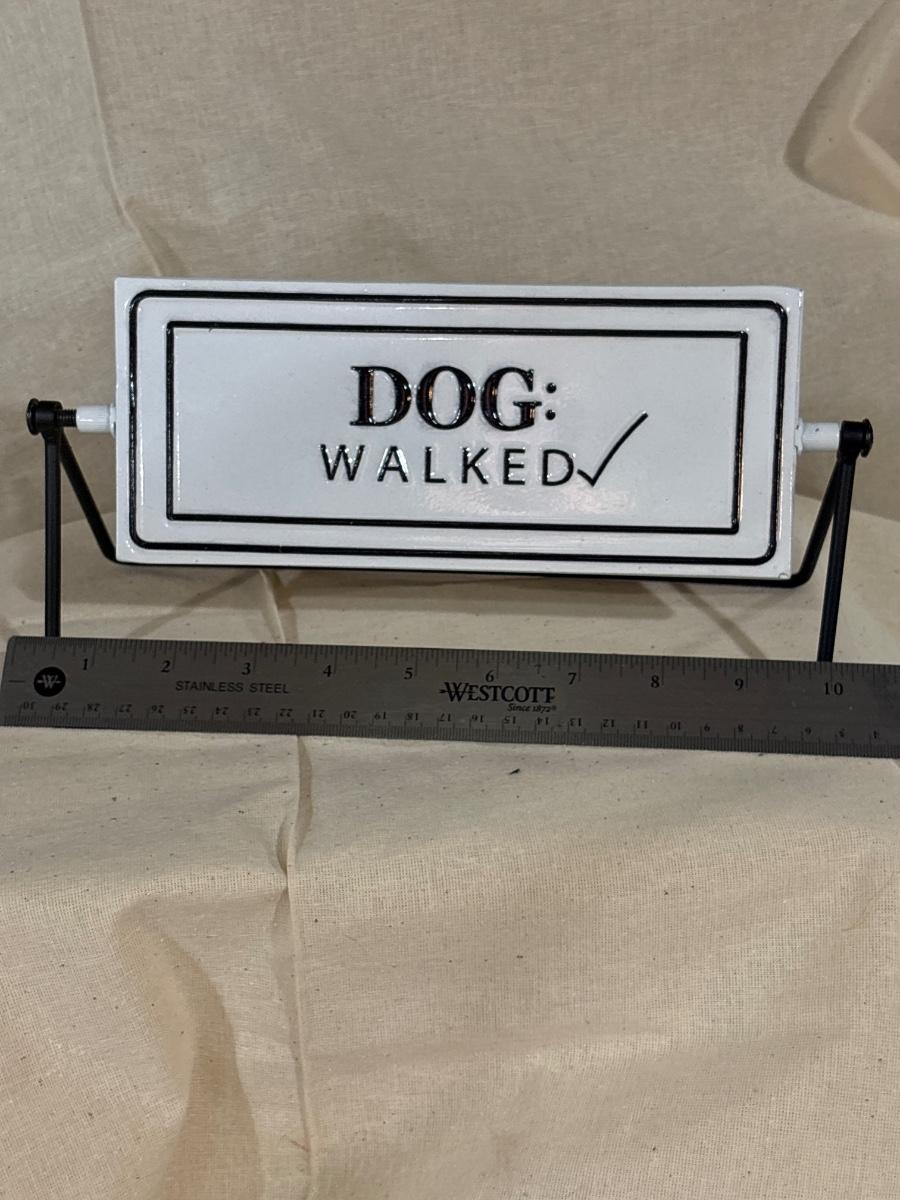 Adorable sign metal “Dog: Needs a Walk”, flip it over mission accomplished!