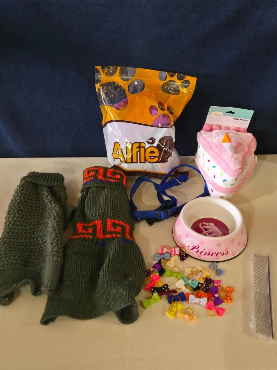 Dog New Toy, Bowl, Bows, Diapers and Sweaters