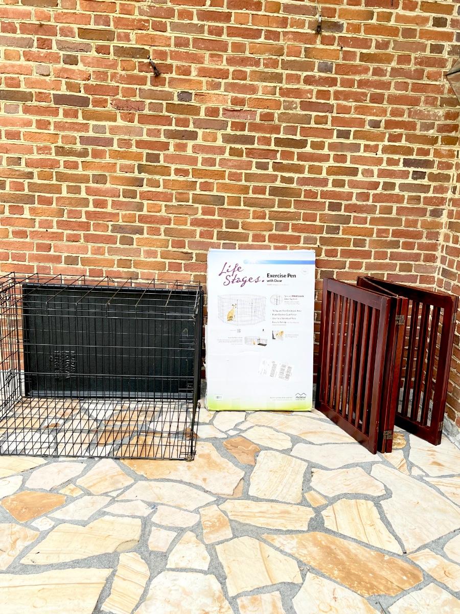 Includes = Crate 30” H x 42” W x 28” D ~ Exercise Pen with door 16 sq. ft. ~ Solid Wood gate with door 32” H x 122” W