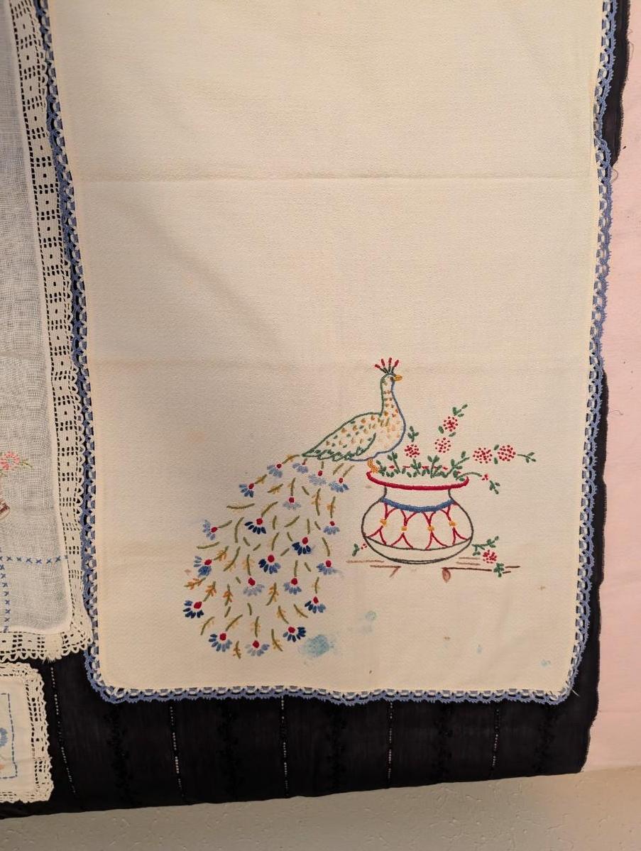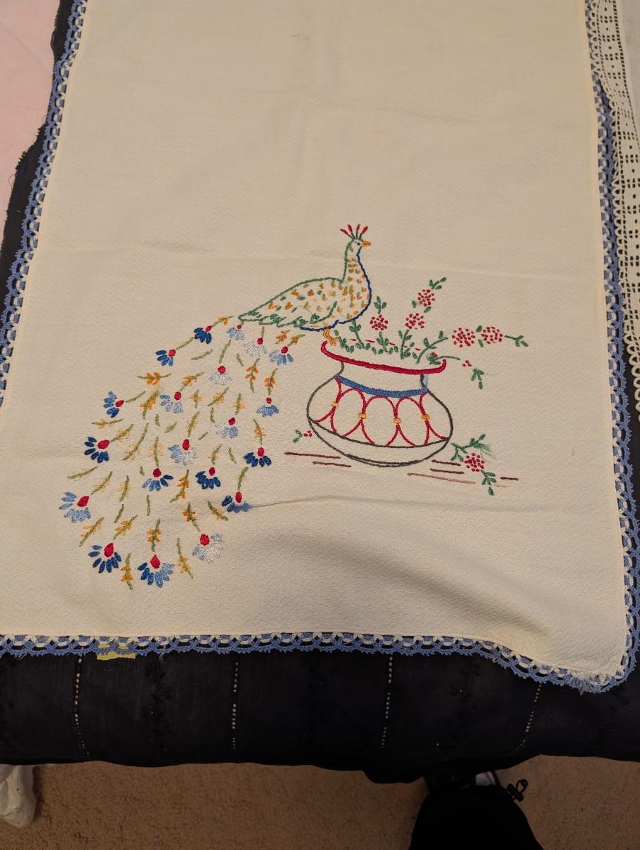Dresser set multicolor crochet edge embroidered peacock lace crusade edge table runners.