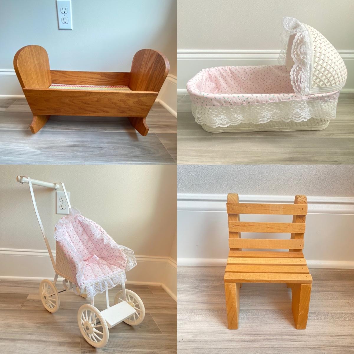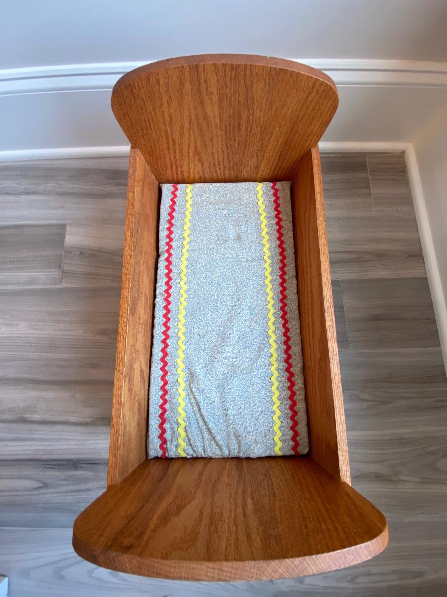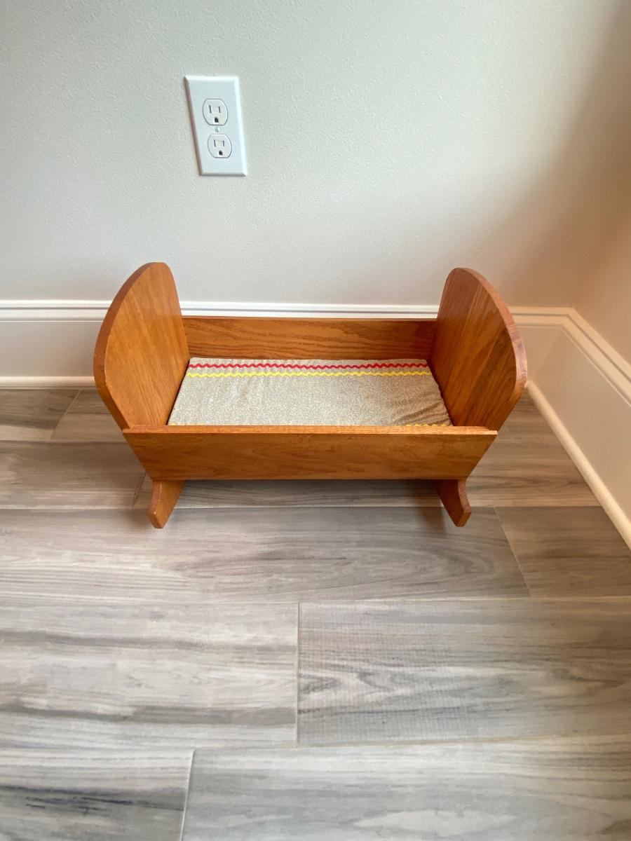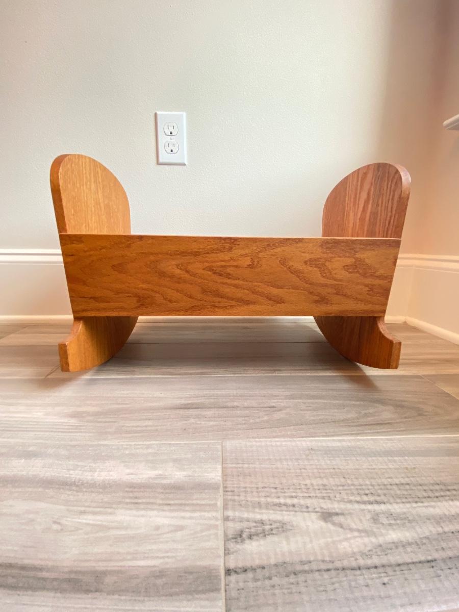 Includes: 1- Rocking Wooden Doll Bed with removable liner. 18”x 12”