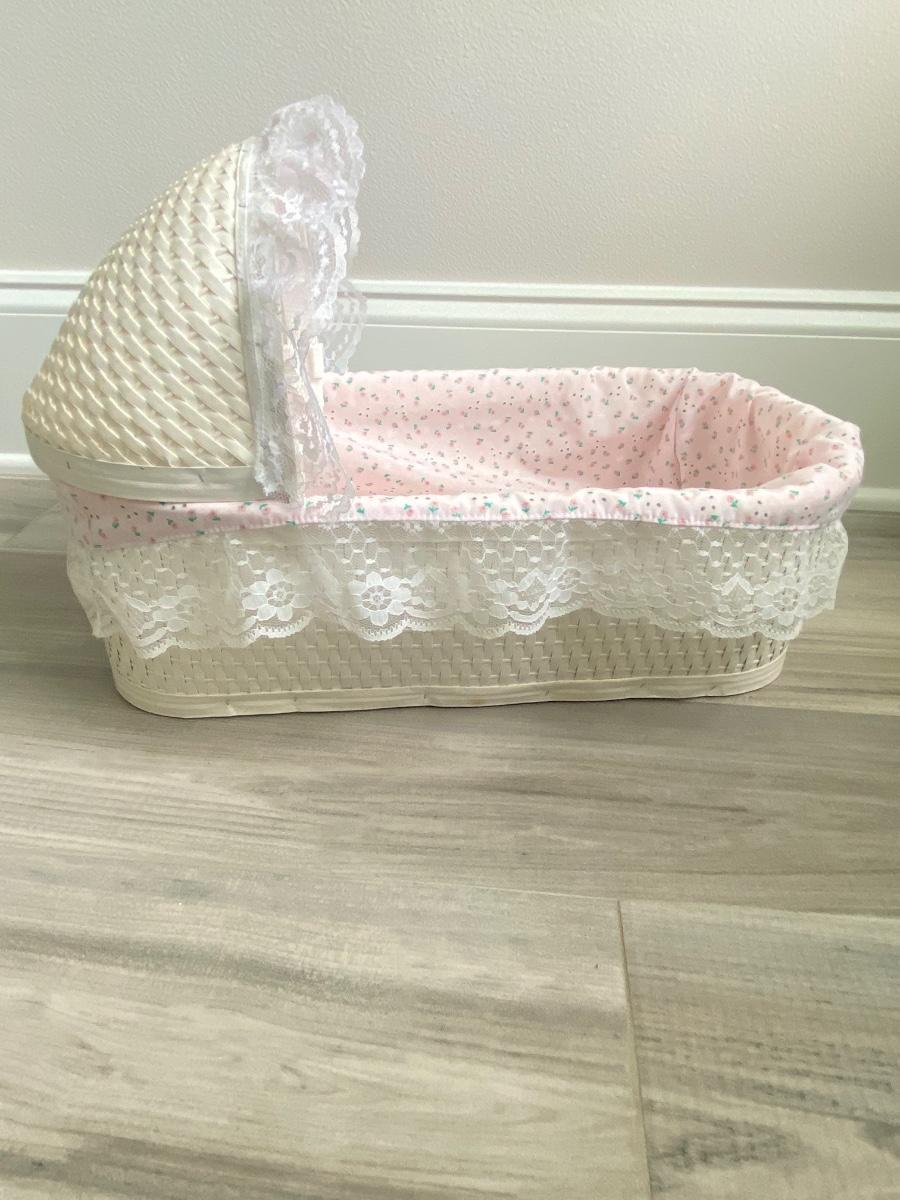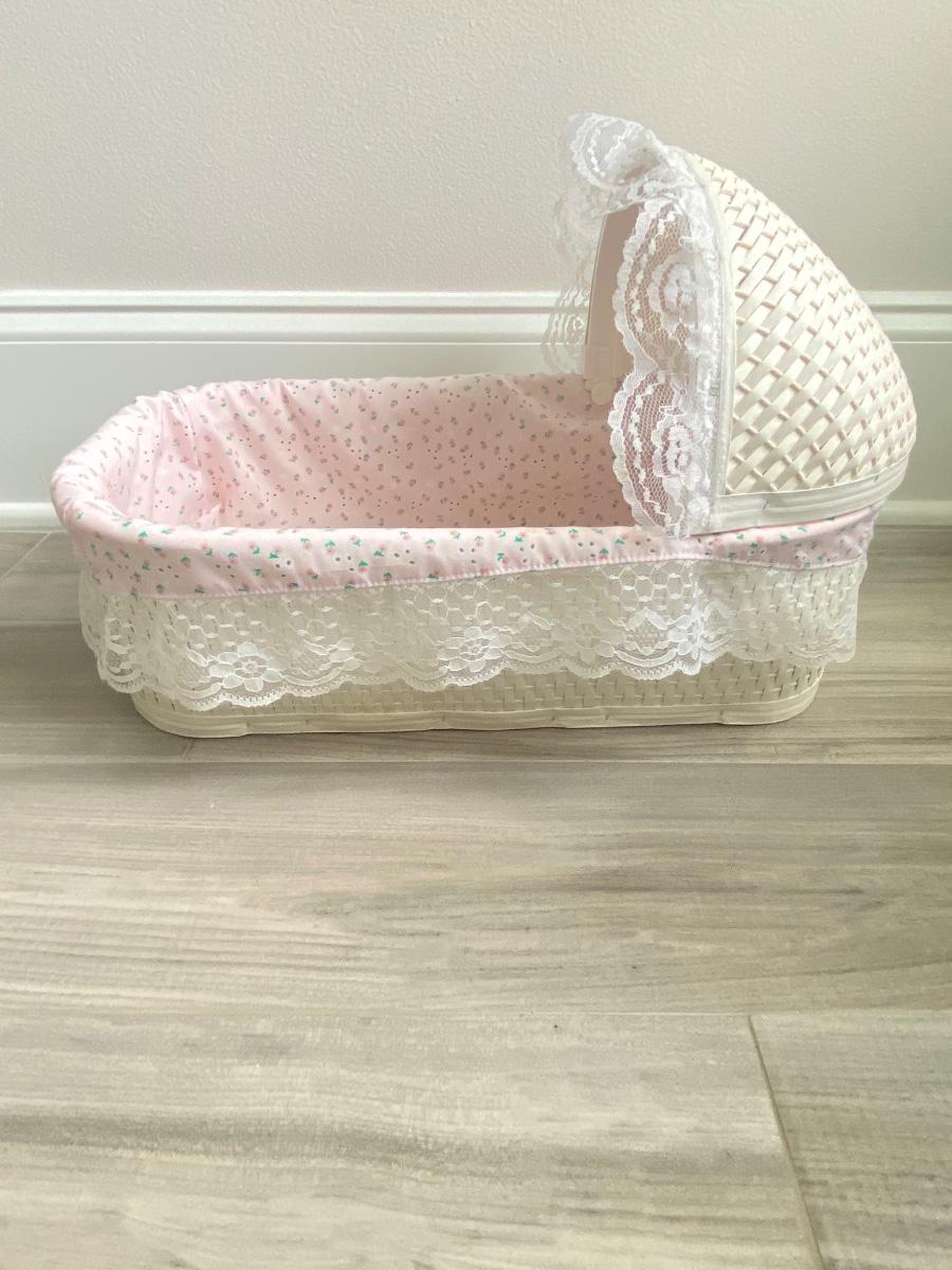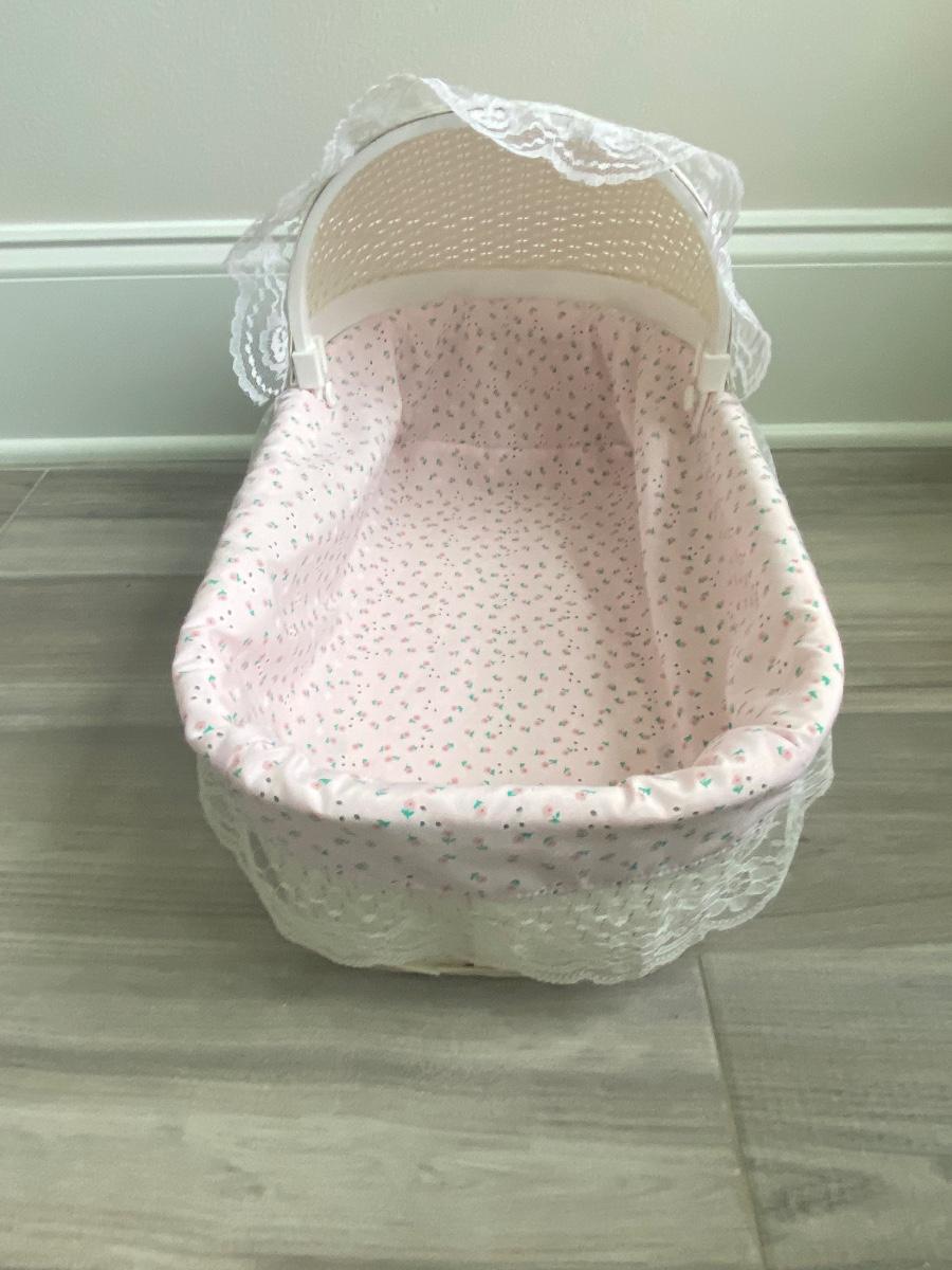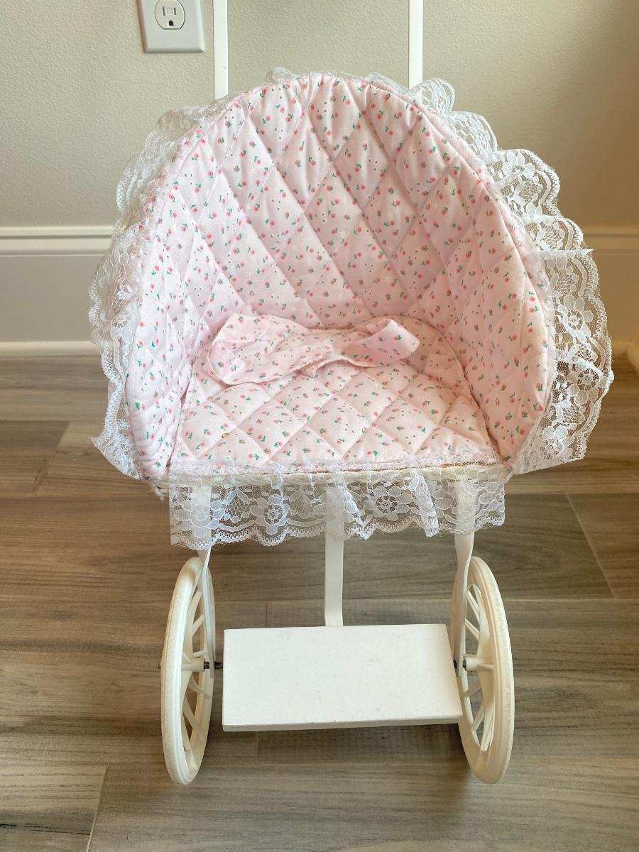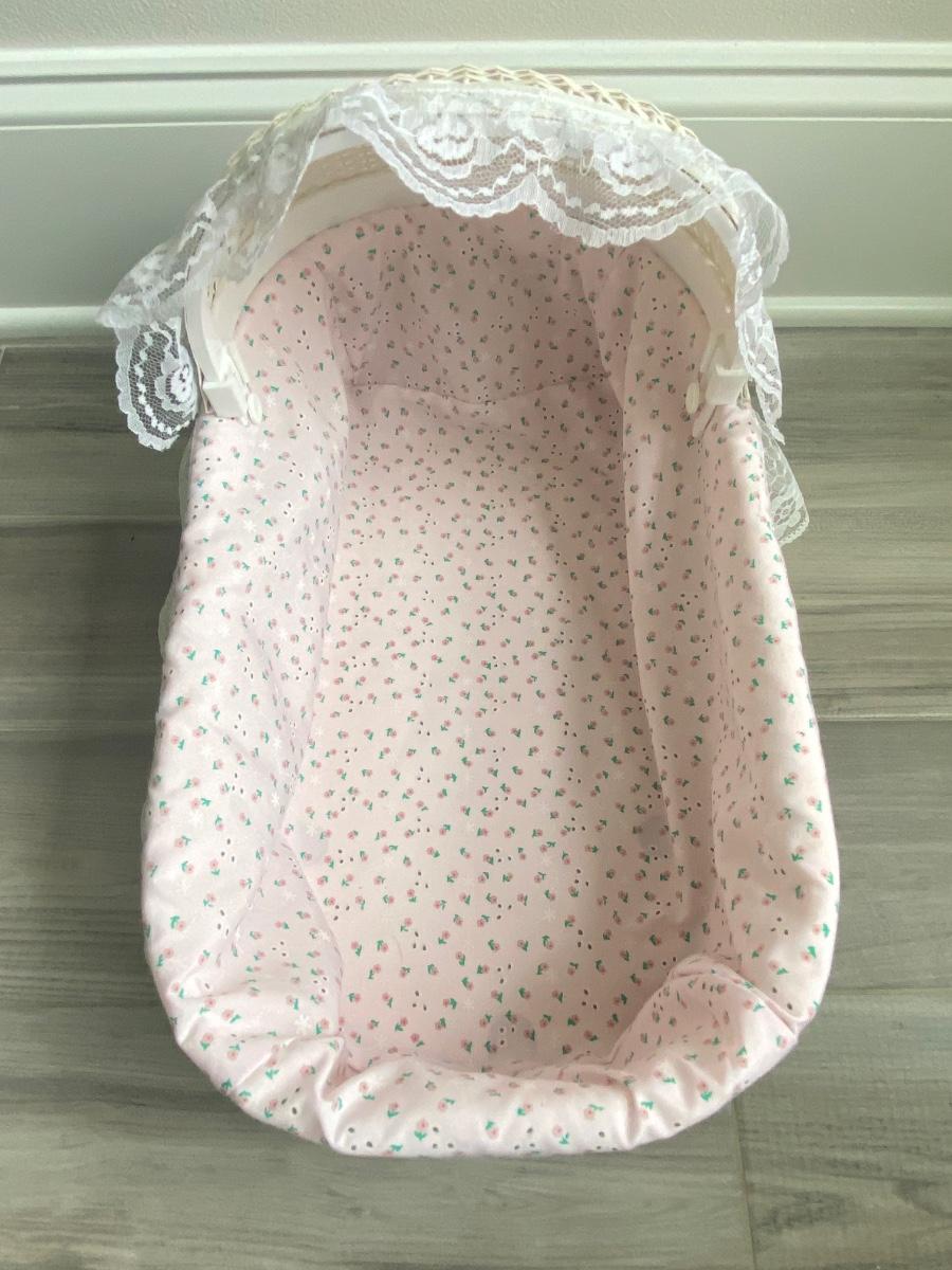 Includes: 1- Rocking Wooden Doll Bed with removable liner. 18”x 12”