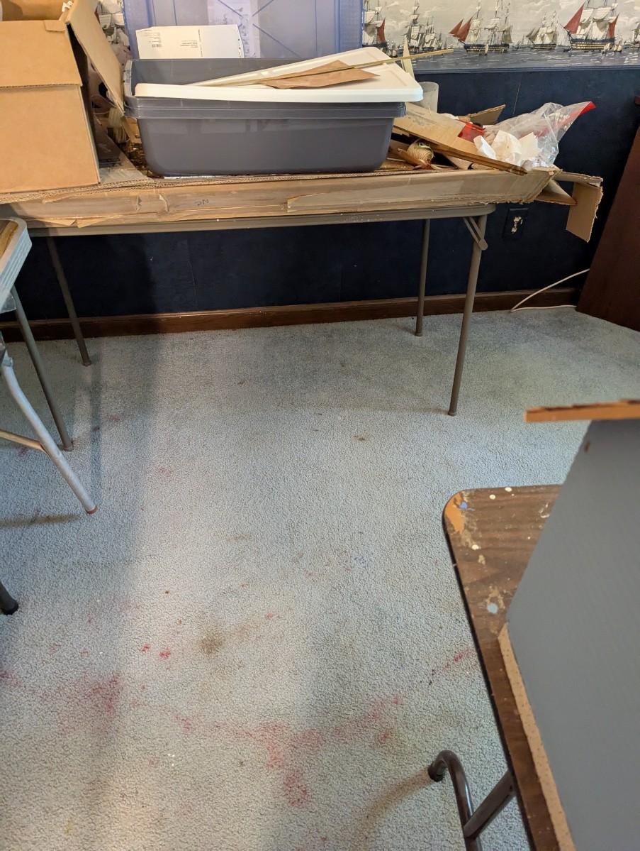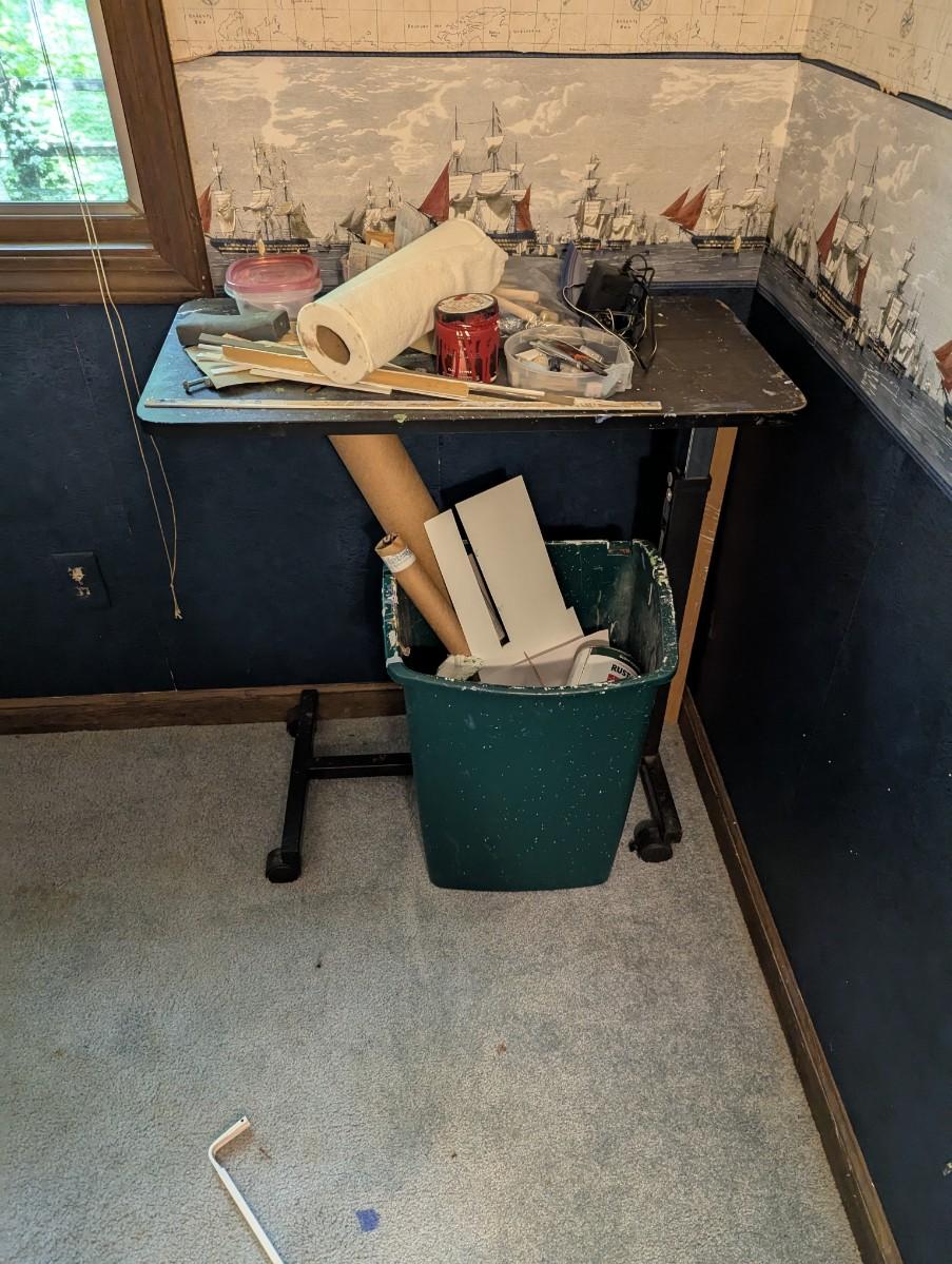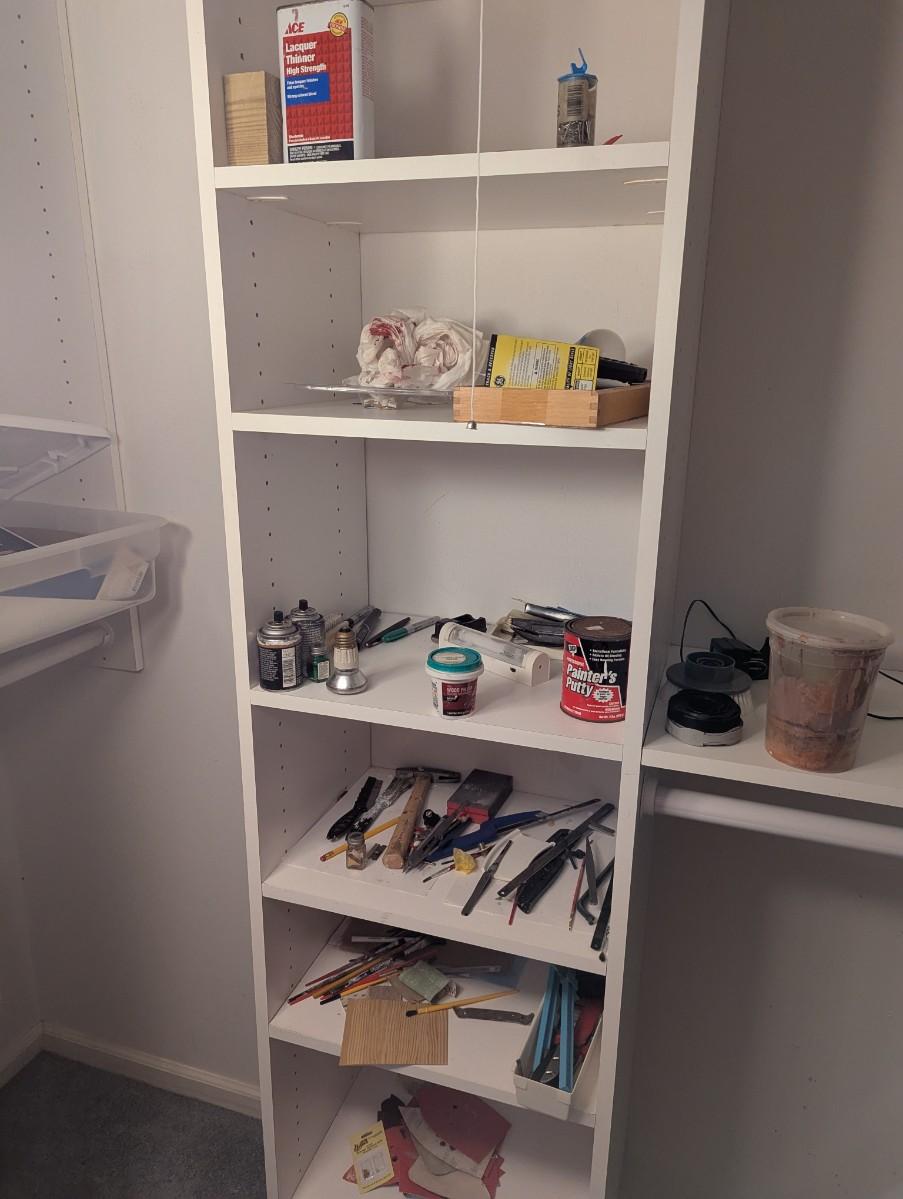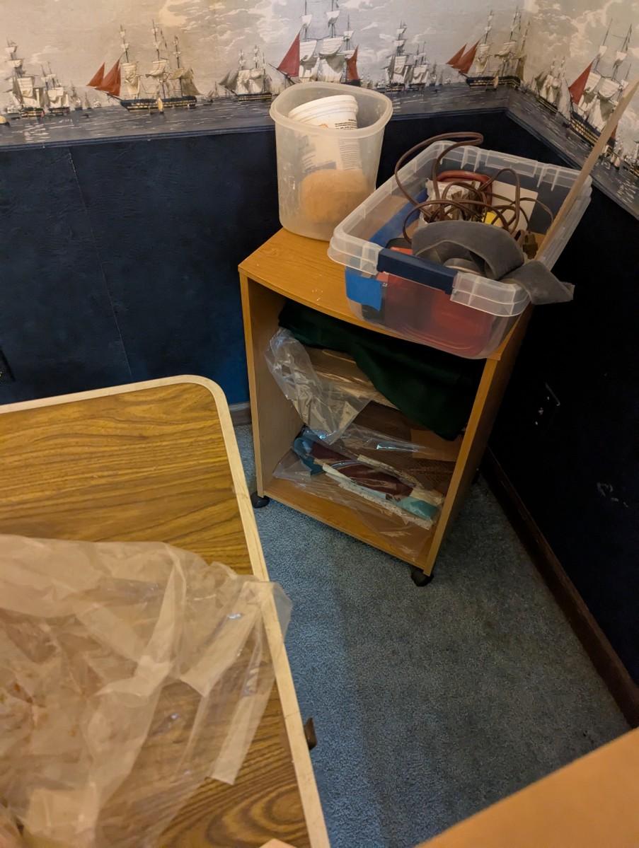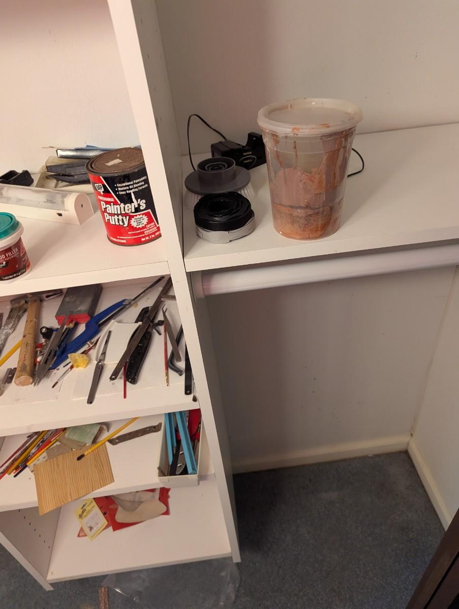 - It is down stairs there is a sliding door to go out at the back of the house and go up some stairs to the driveway - you are not required to take the paint. Please put in the closet when removing the other items. Thank you
