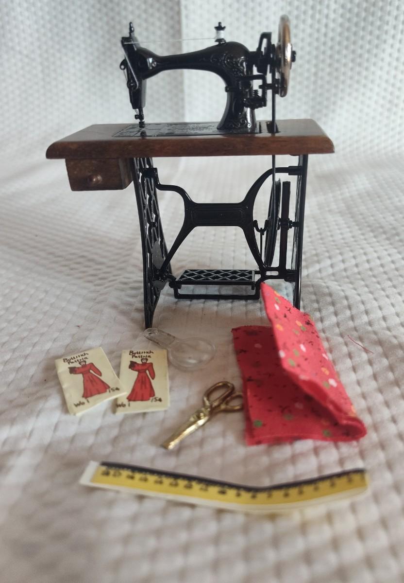 DOLLHOUSE SEWING MACHINE AND ACCESSORIES