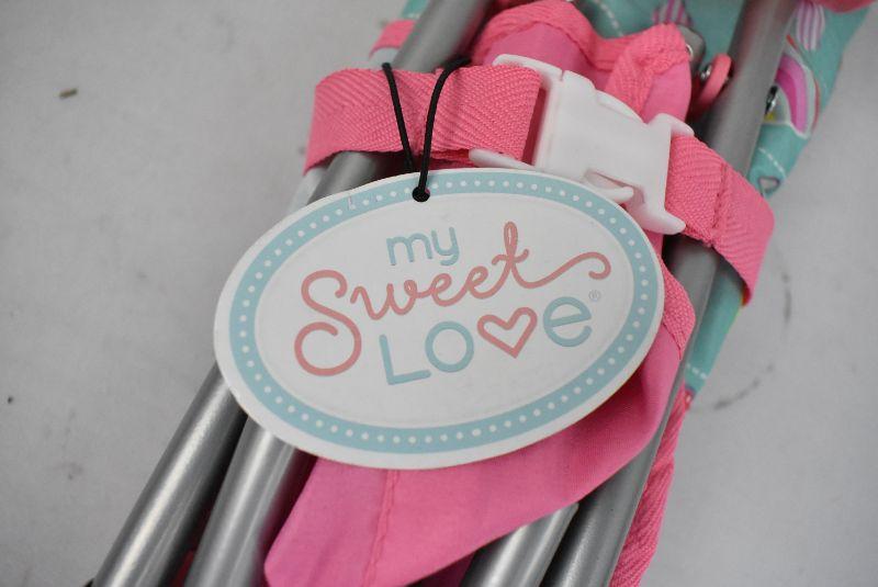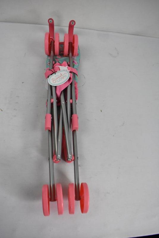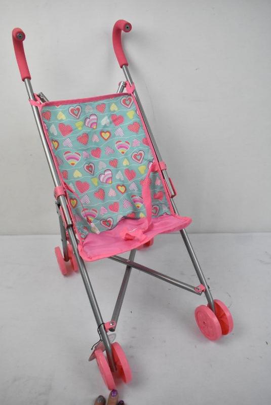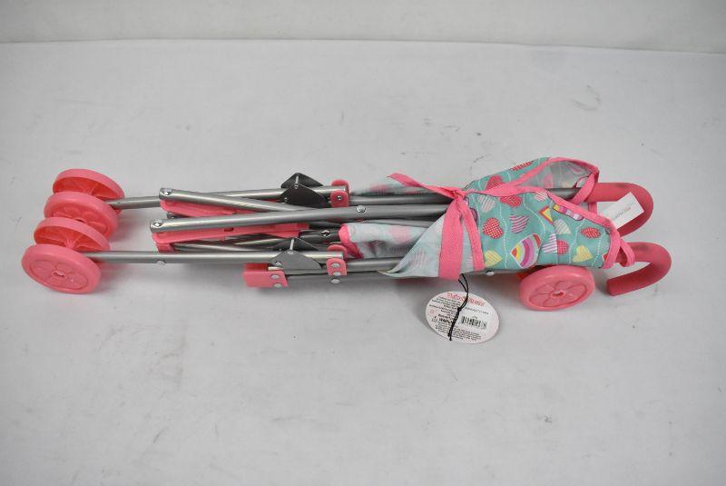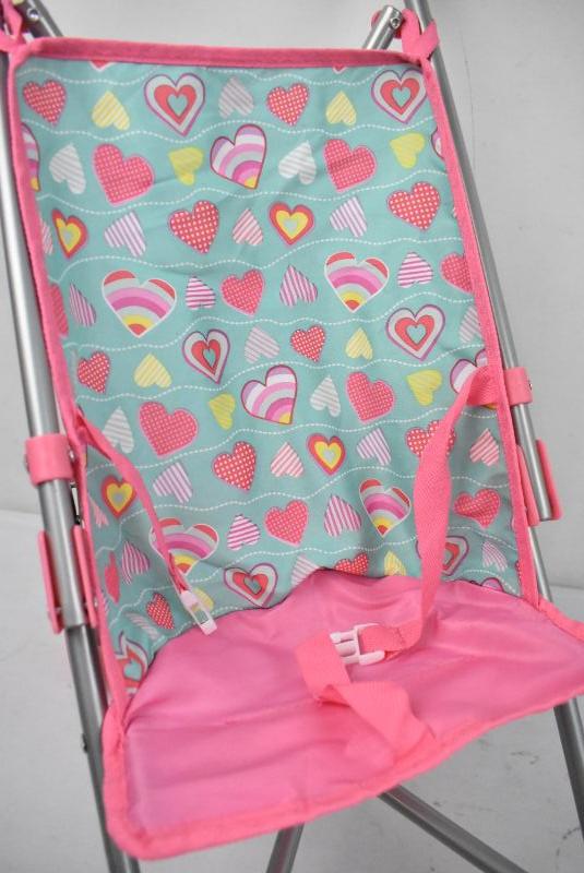 Doll Size Umbrella Stroller, Pink/Green/Hearts - New