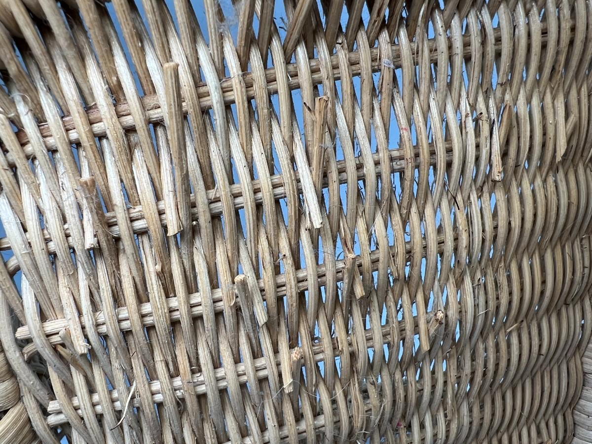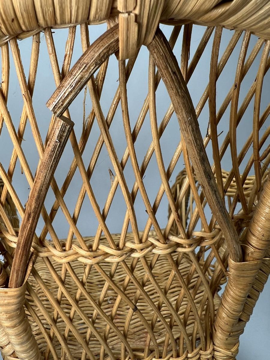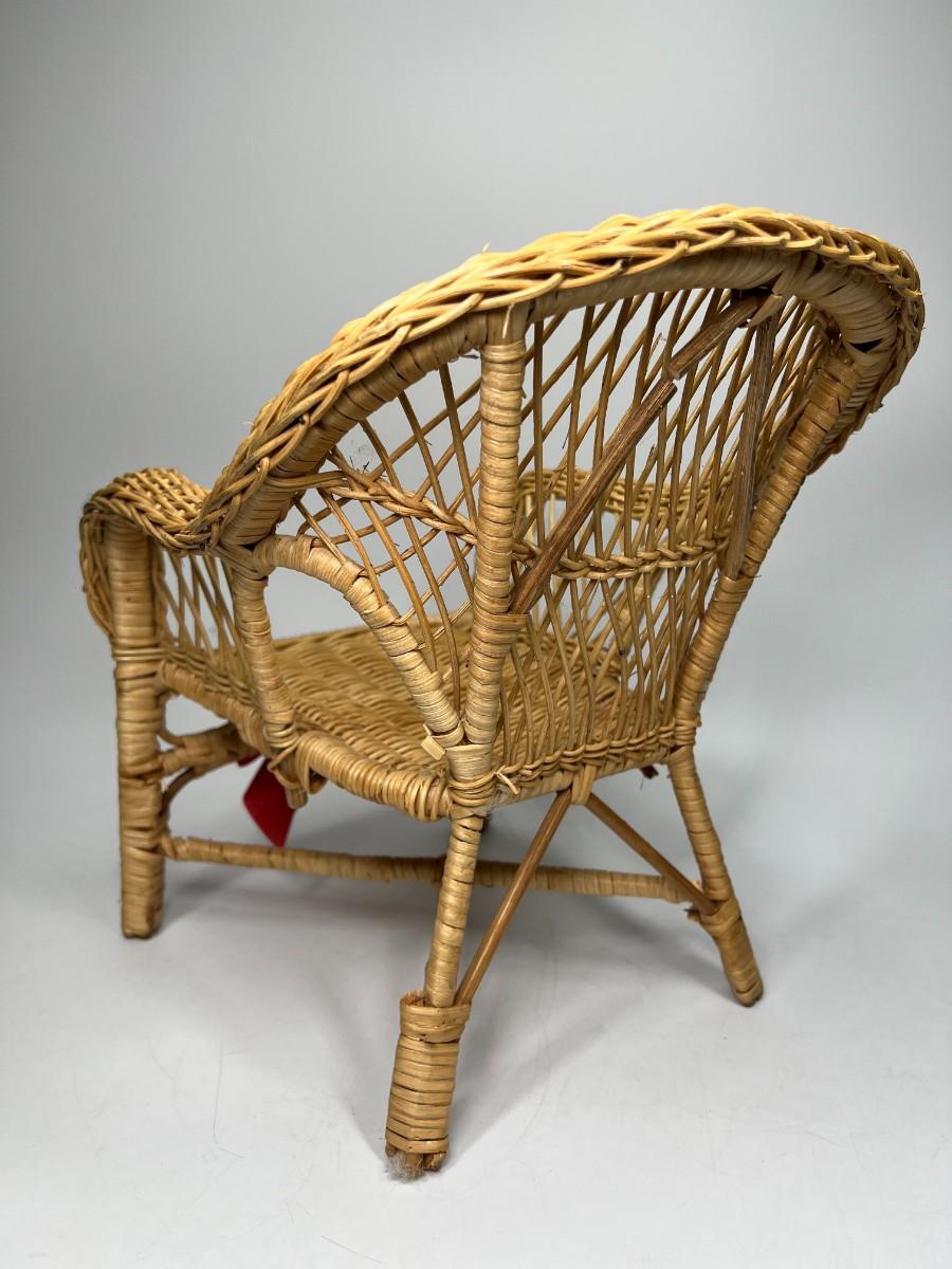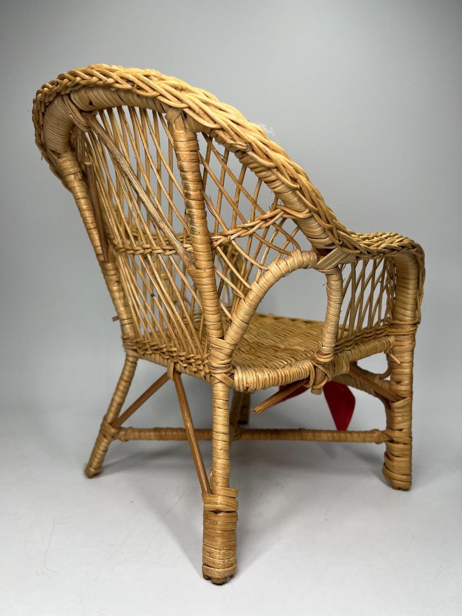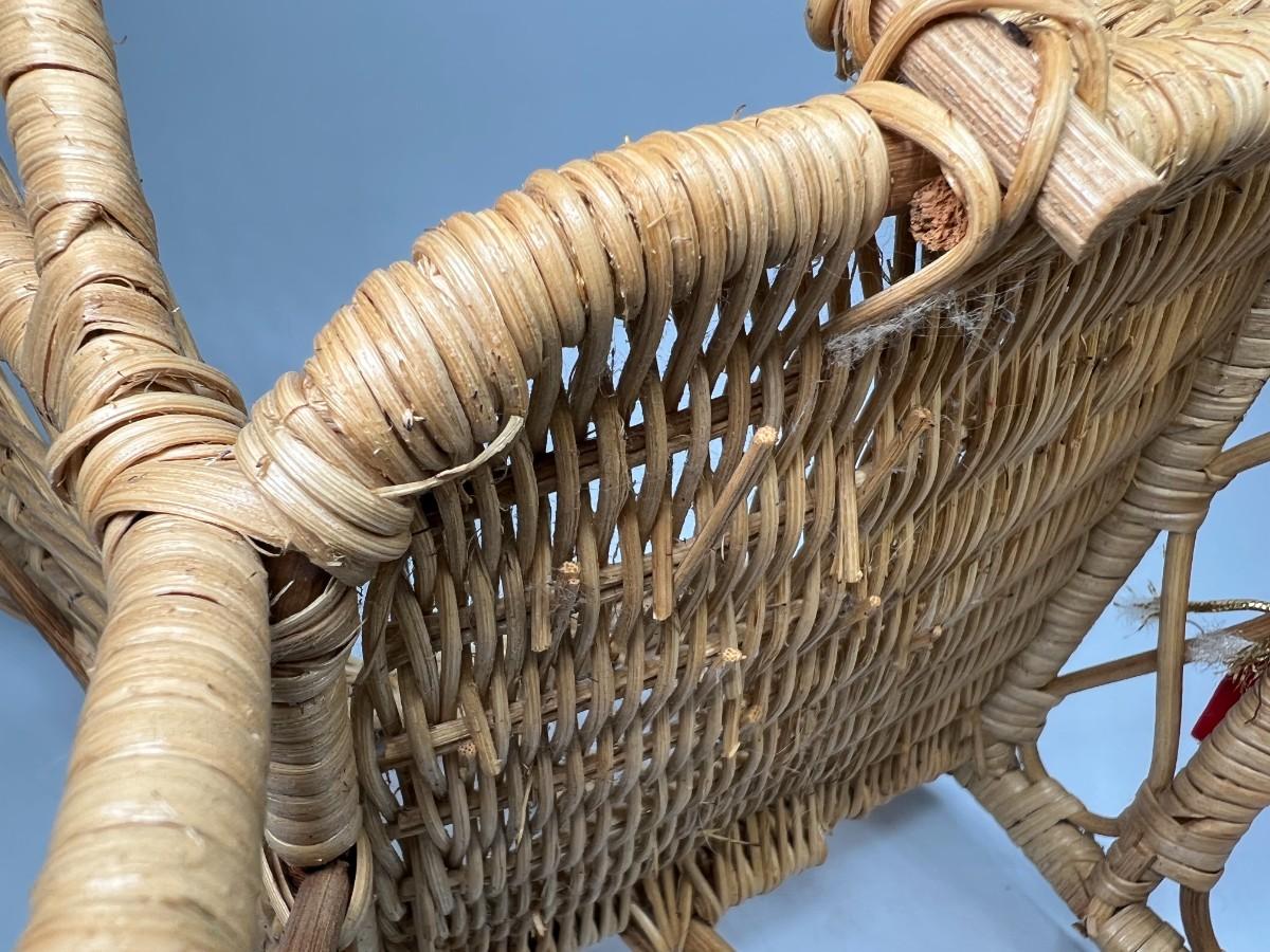 Doll Size Wicker Rattan Arm Chair. In good condition, bow can be removed.