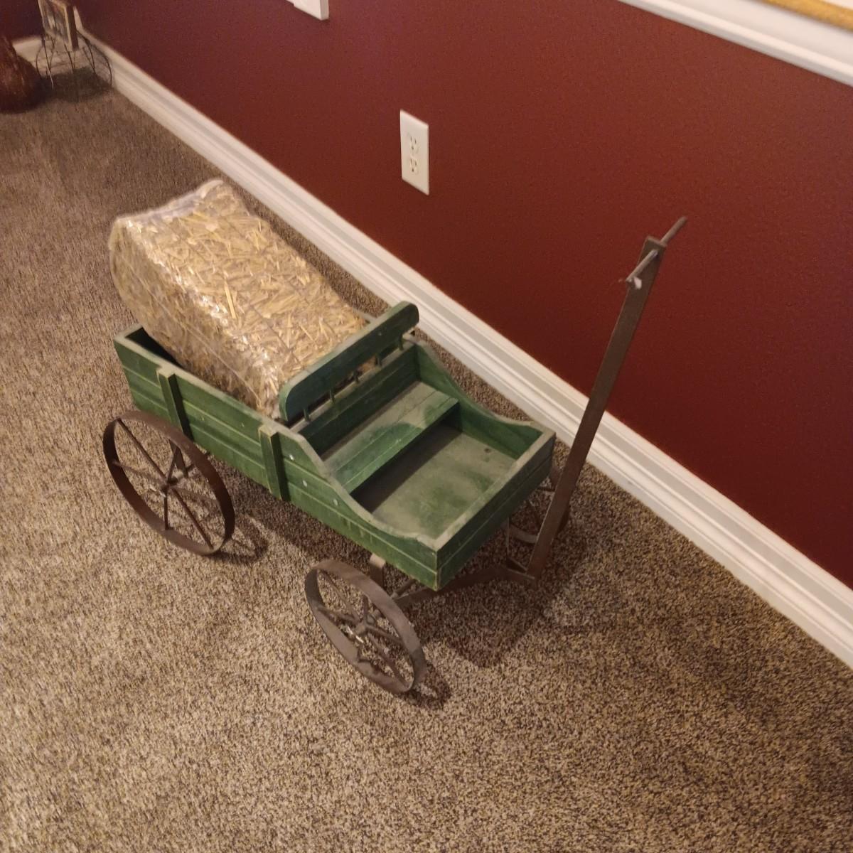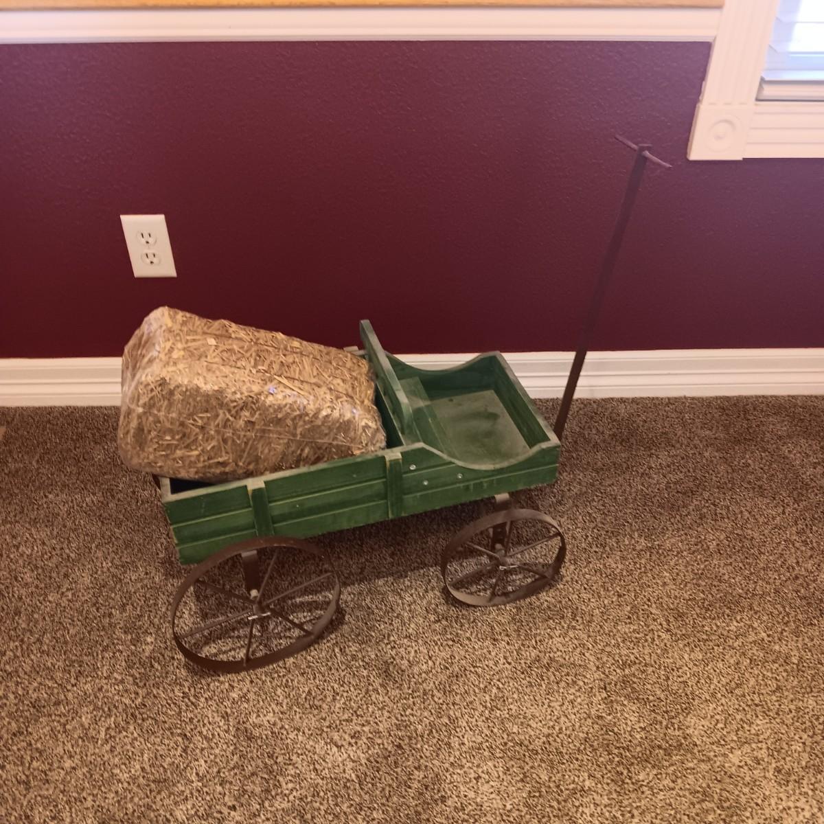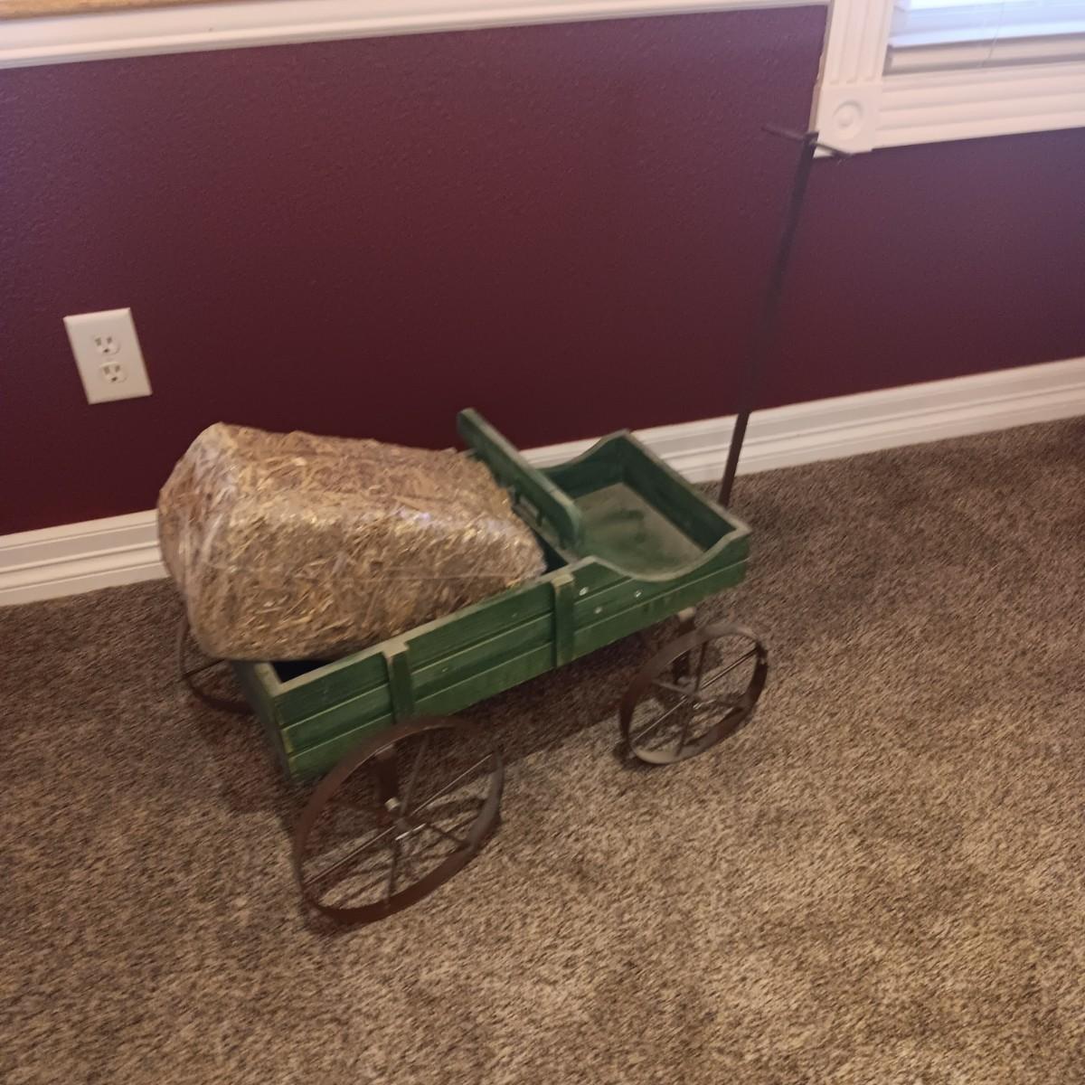 DOLL SIZE WOODEN WAGON WITH A BAIL OF HAY