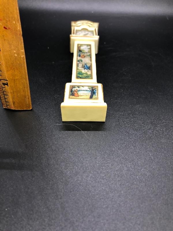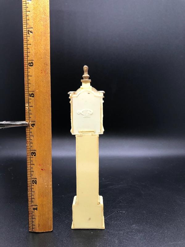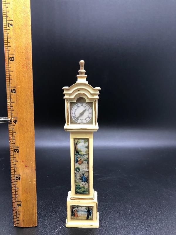 Dollhouse miniature grandfather clock. This clock is in good condition. About 6". #499a61