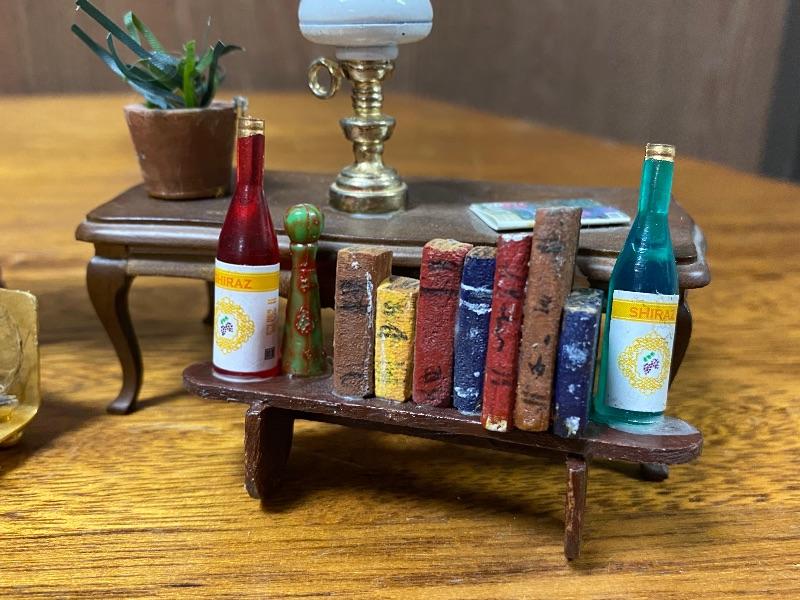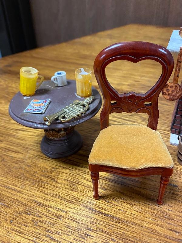 Dollhouse miniatures lot, included is everything seen in the photos. All accessories have been glued into place. They might be able to be removed. Previously used condition.