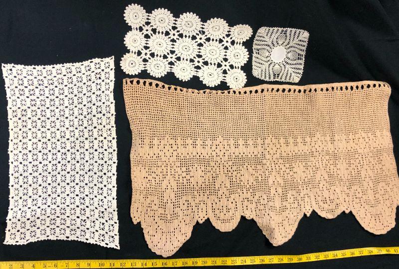 Mixed variety of doilies. 4 doilies very different from each other. No Holes. May have light discoloration/spots from age.