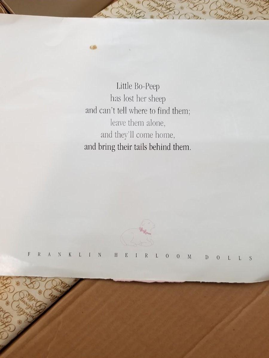 Franklin Heirloom dolls Little Bo Peep, Favorite Friends Georgetown collection - Samantha with cats SA 7202