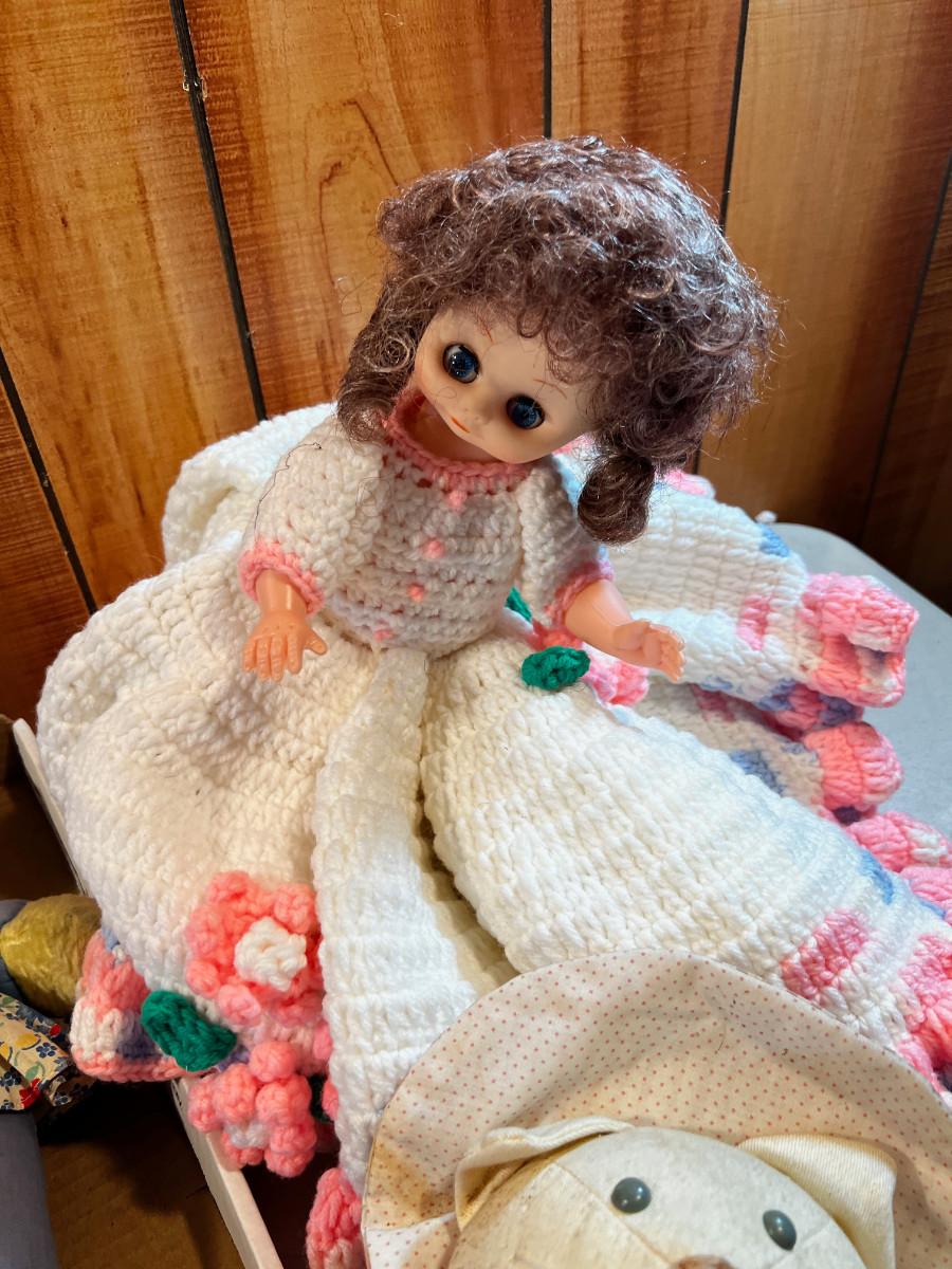 one has a hand made Crocheted Dress. Some are Hand made Dolls.