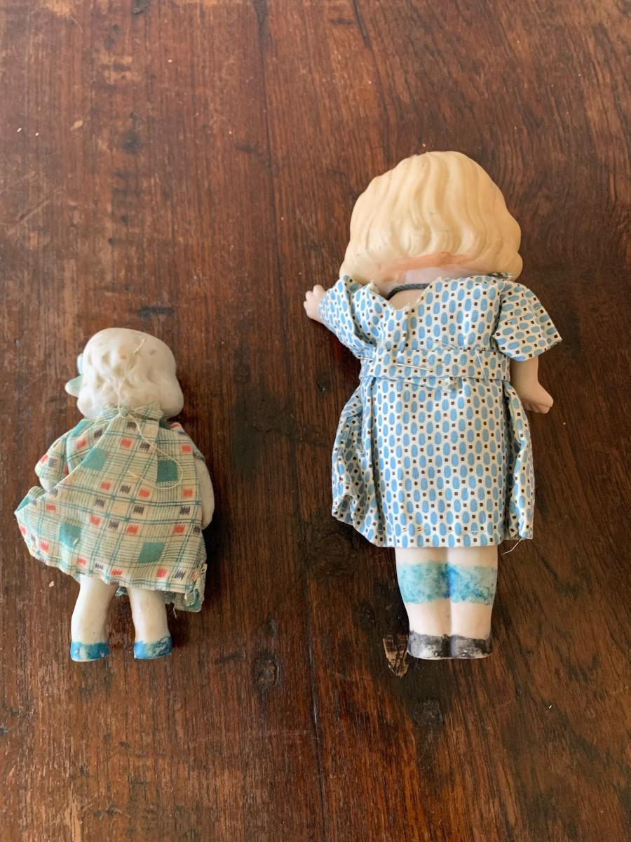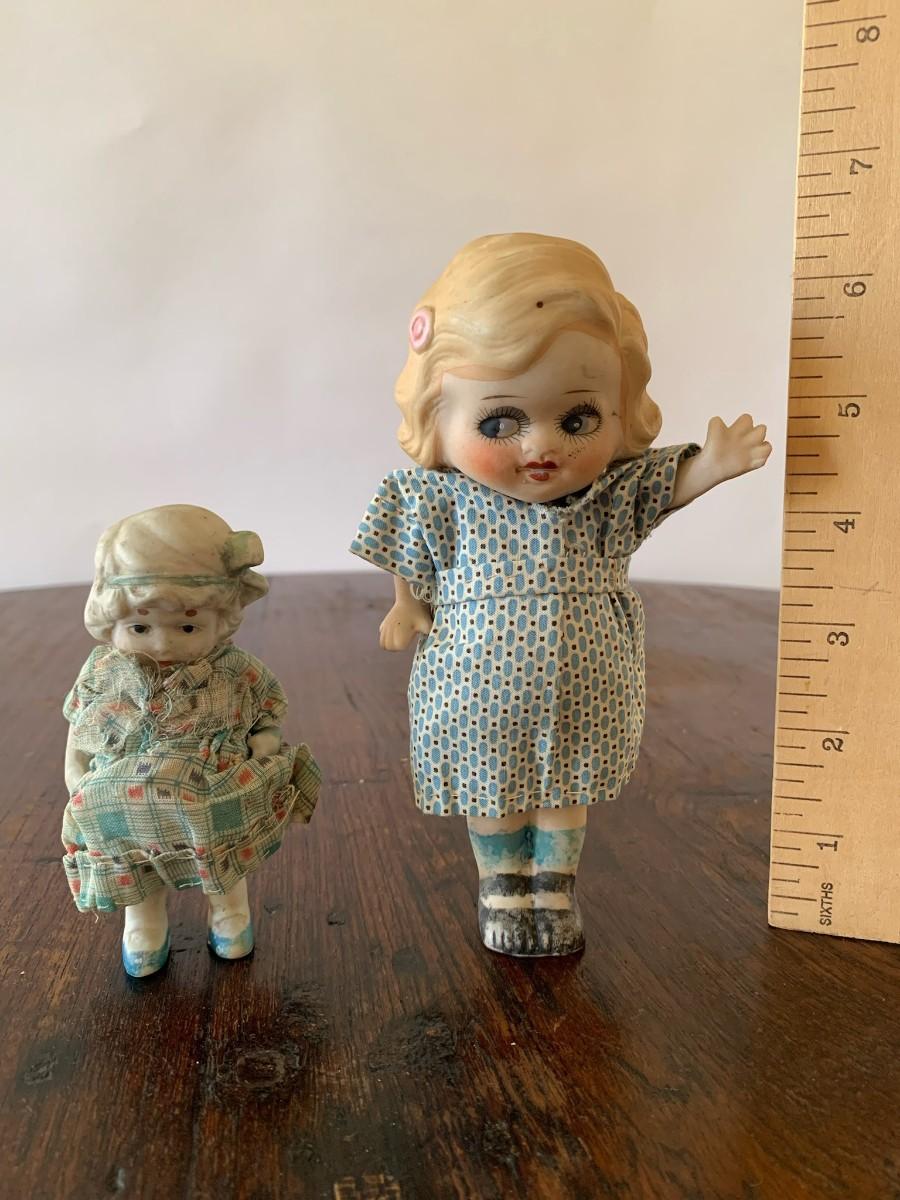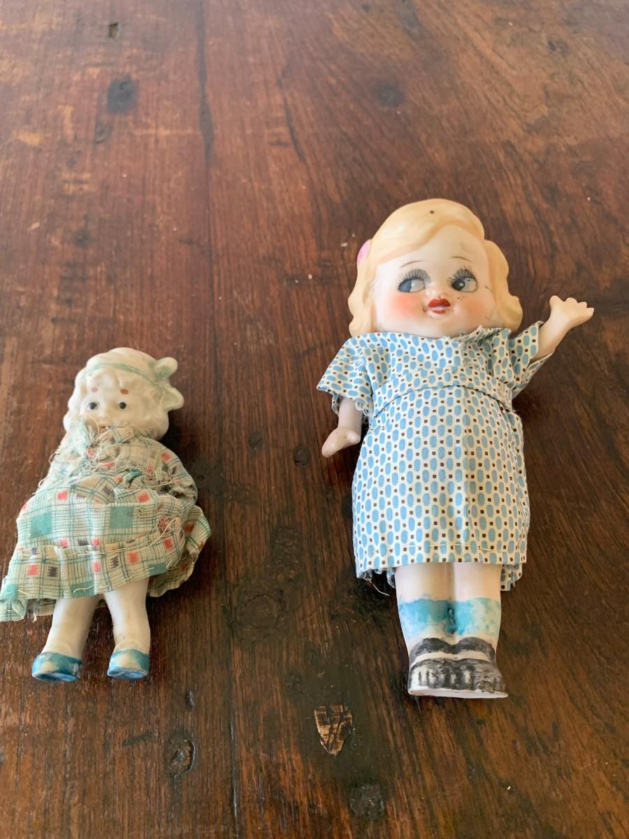 1920s porcelain flapper doll with moveable arms. Made in Japan. Approx 4 inches.