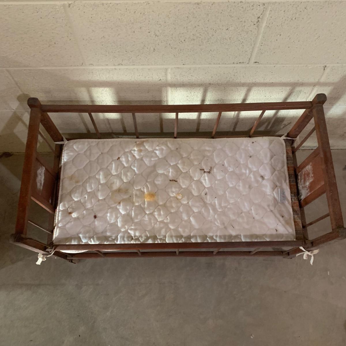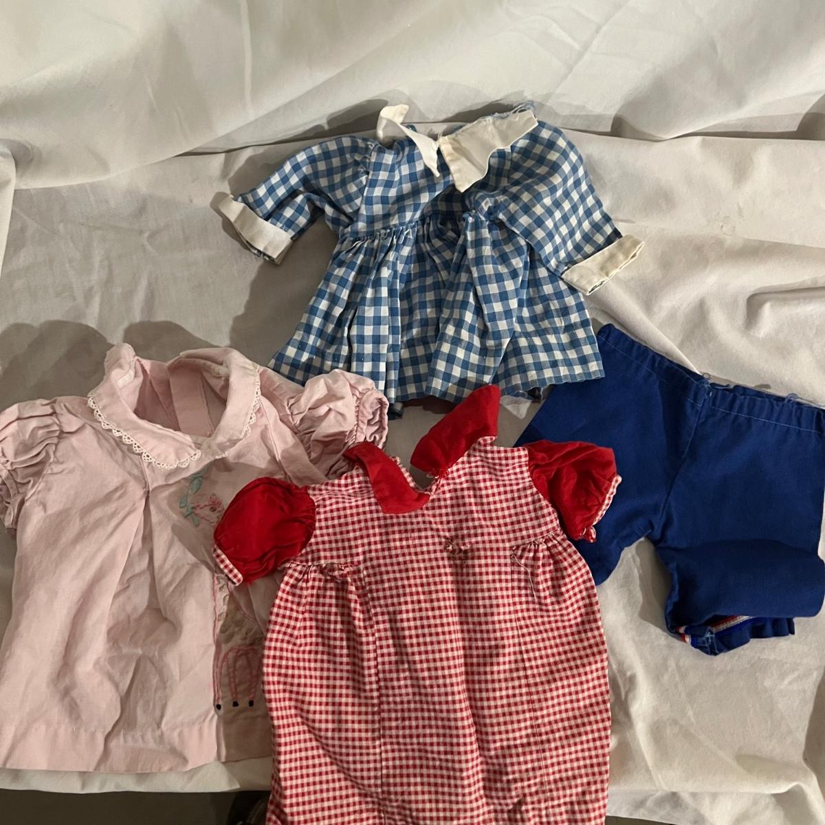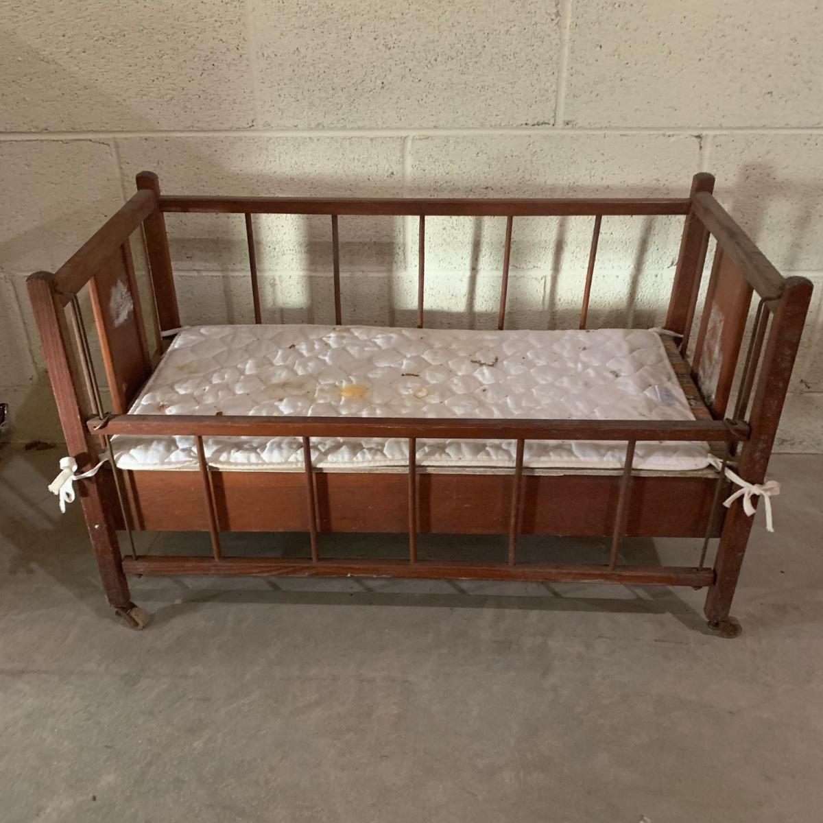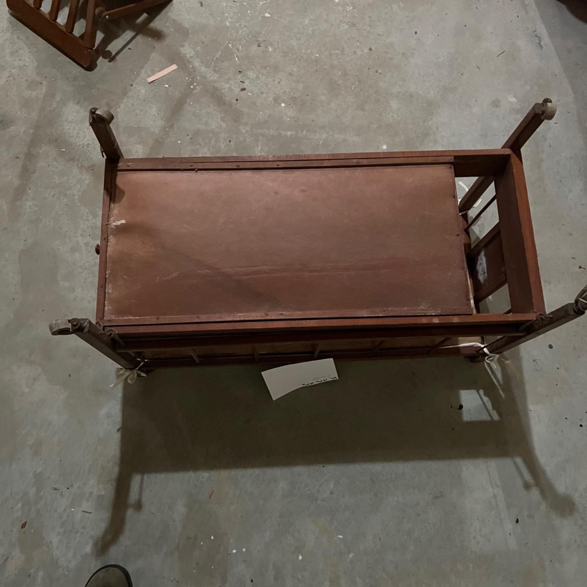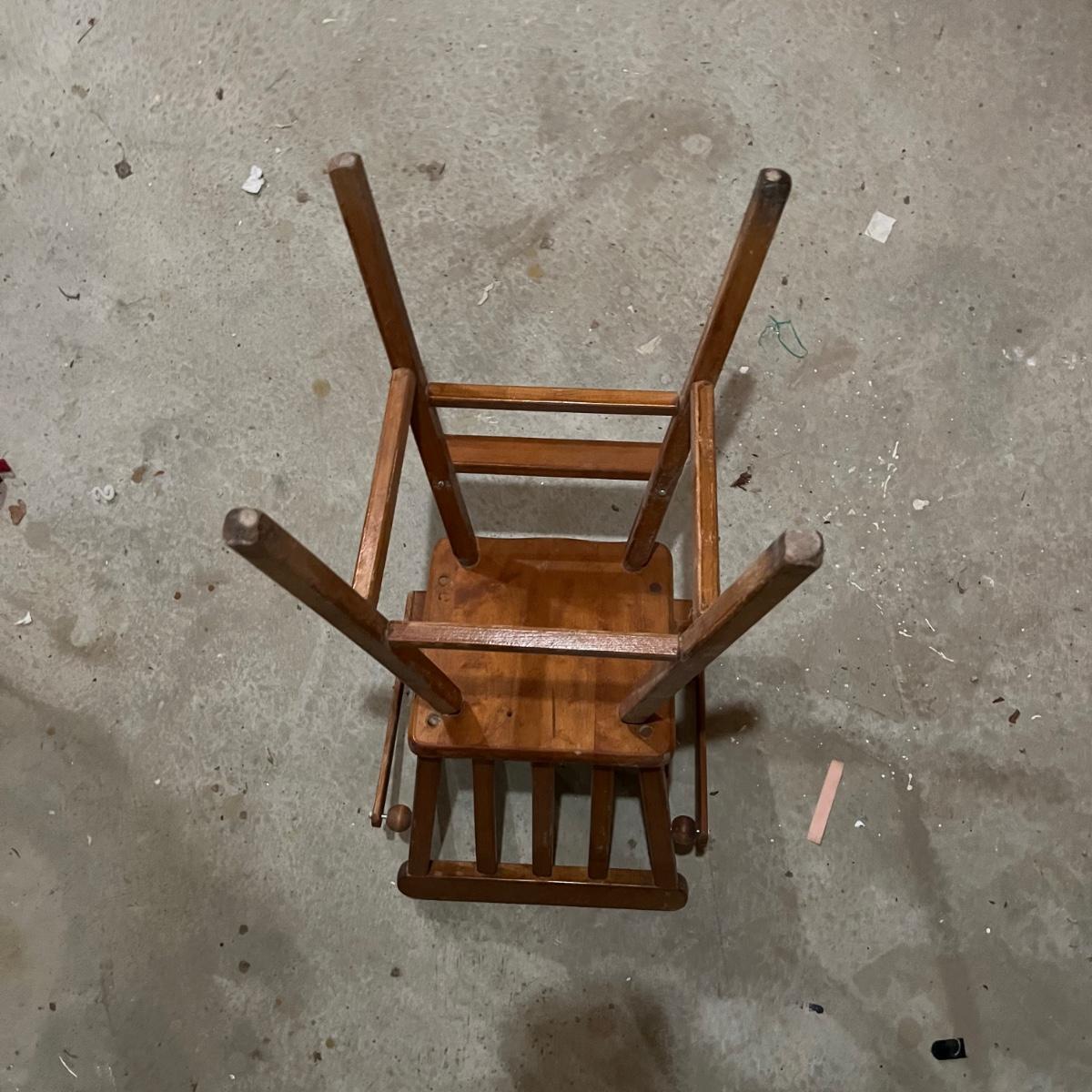 This lot includes doll-sized highchair, crib, clothes, and blankets. Crib measures 30”L x 14.5”W x 19.5”H and the highchair measures 12”L x 12”W x 26”H. The crib has two drawers for storage and the high chair has a functioning tray. These items appear to be in good condition, but could use a little cleaning due to being stored in a basement. No apparent manufacturer for the dial clothing or label identified. Perfect for American Girl dolls! Local pick-up only.