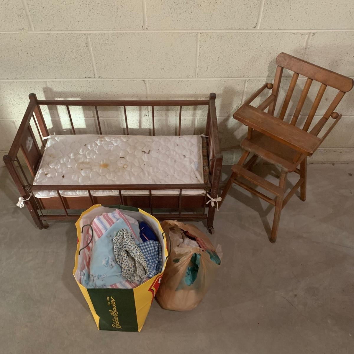 Doll-Sized Highchair, Crib, and Doll Clothes (B-KW)