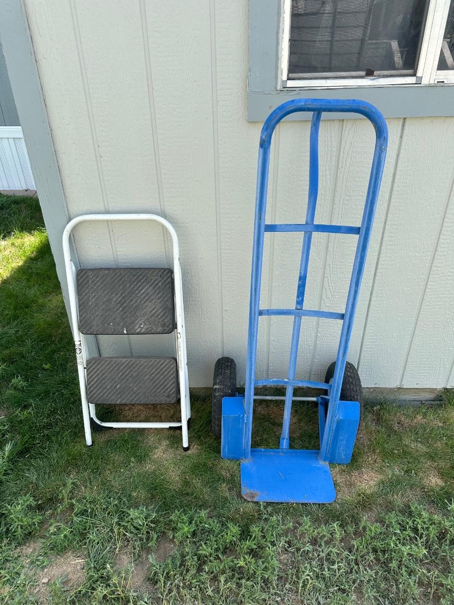 DOLLY AND A FOLDING STEP LADDER
