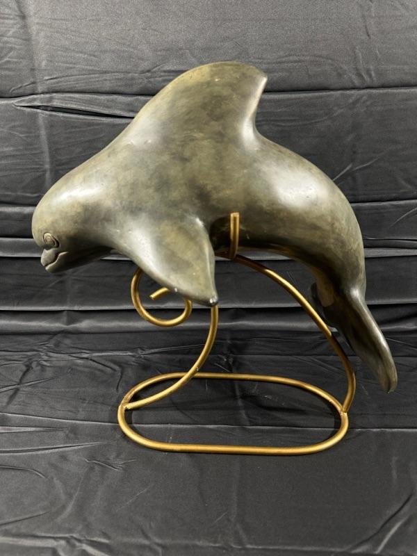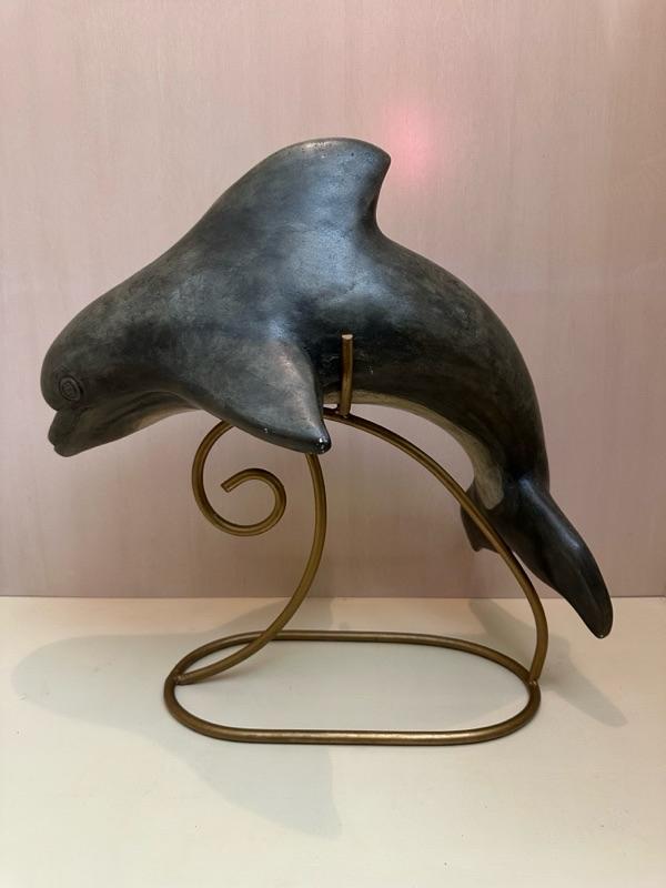 A fantastic dolphin sculpture that comes with a gold toned stand (pictured)