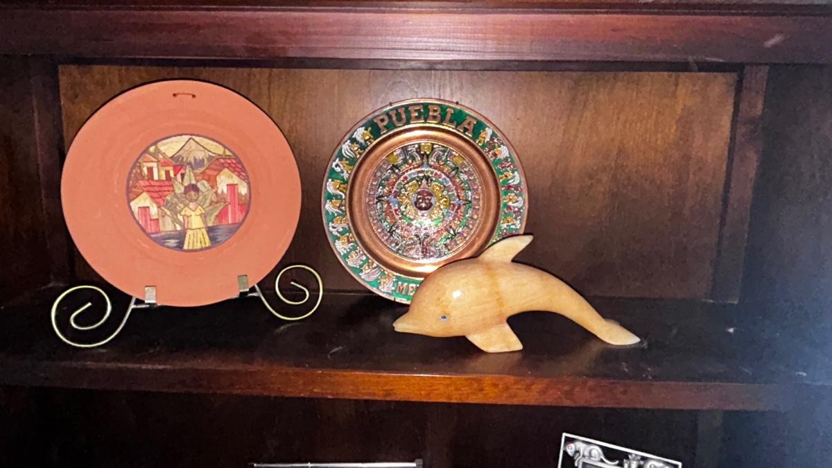 DOLPHIN MADE OF STONE AND MEXICO PLATES