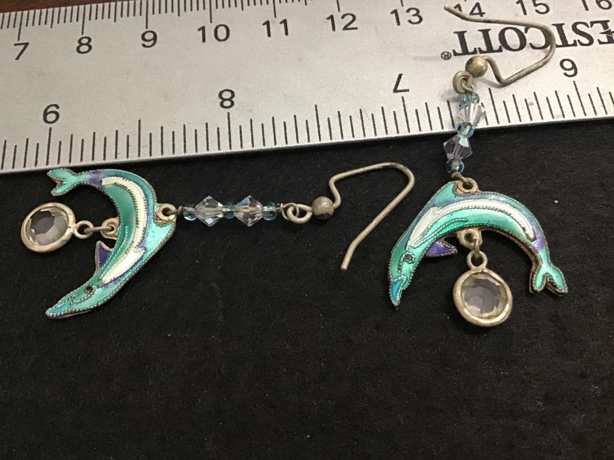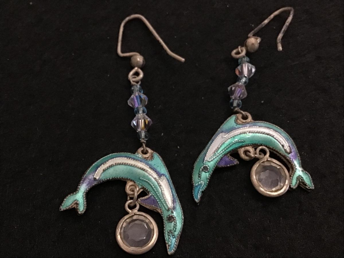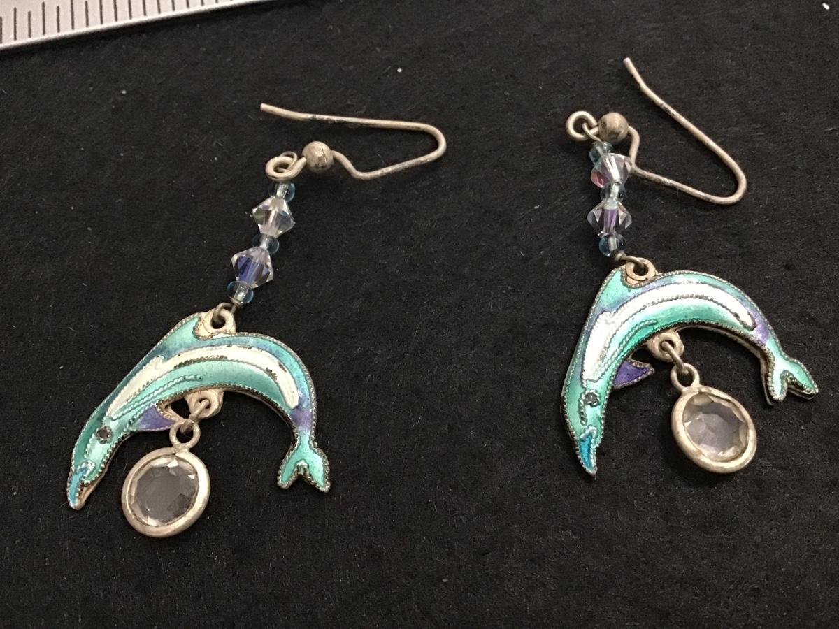 Dolphin/Whale Enamel Vintage Earrings Silver