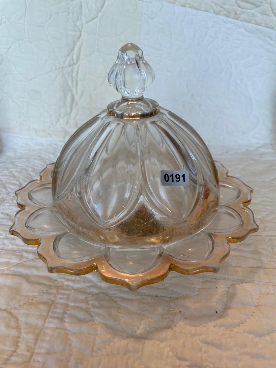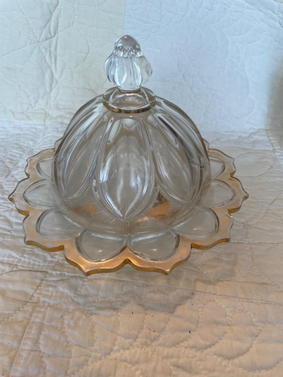 Domed gold trim butter dish