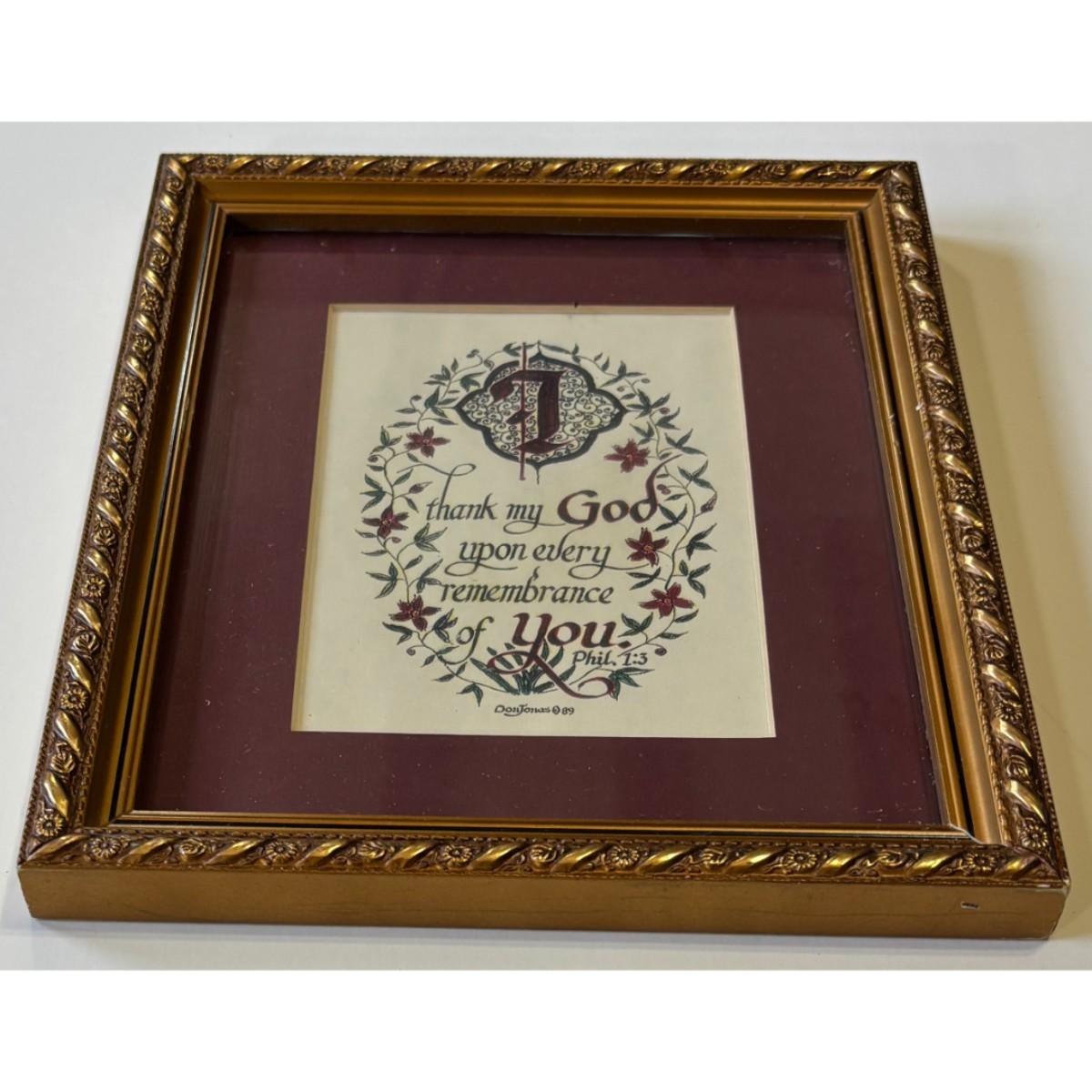 Don Jonas Calligraphy Thank My God Upon Every Remembrance Of You Framed