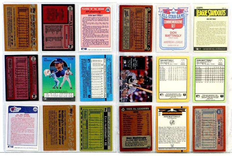 DON MATTINGLY BASEBALL CARDS SET OF 18 - EX/MINT