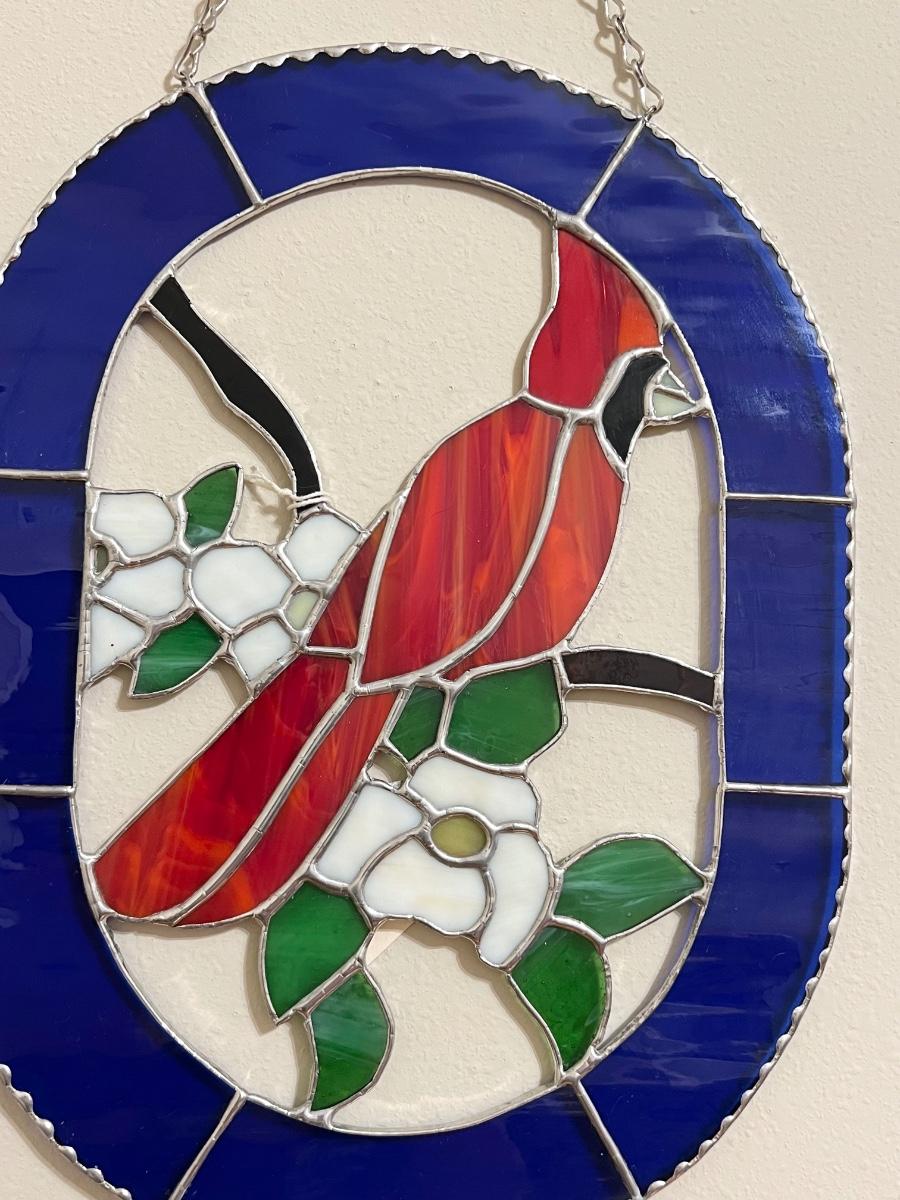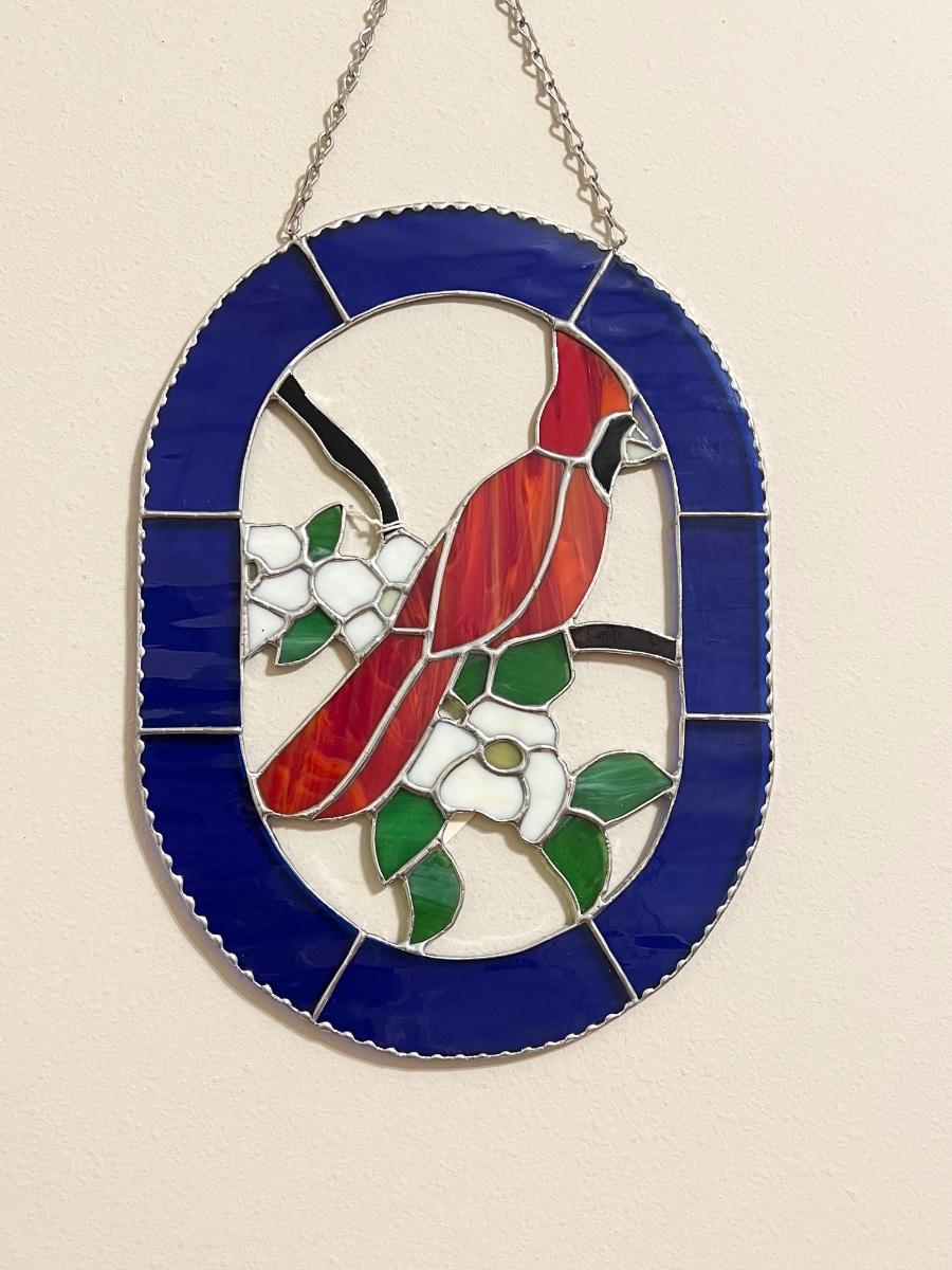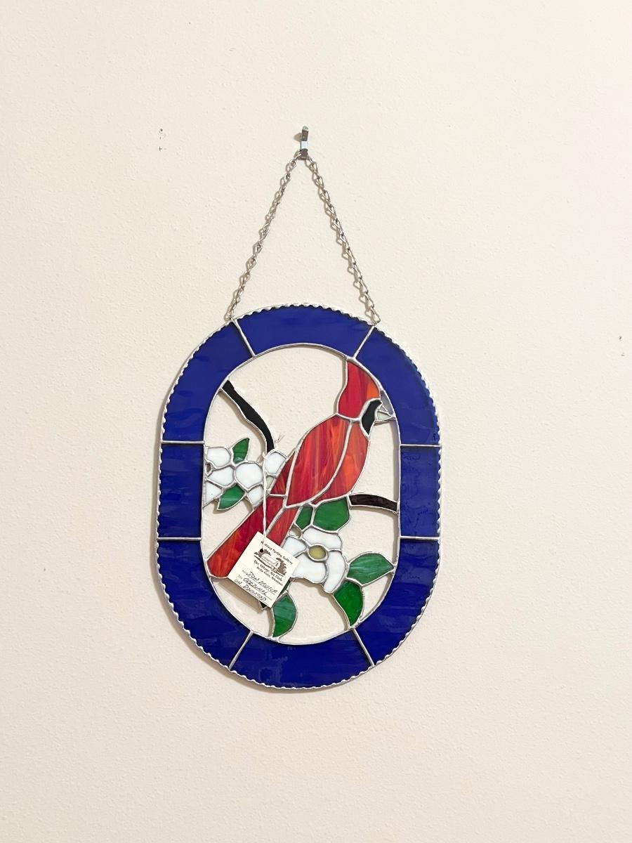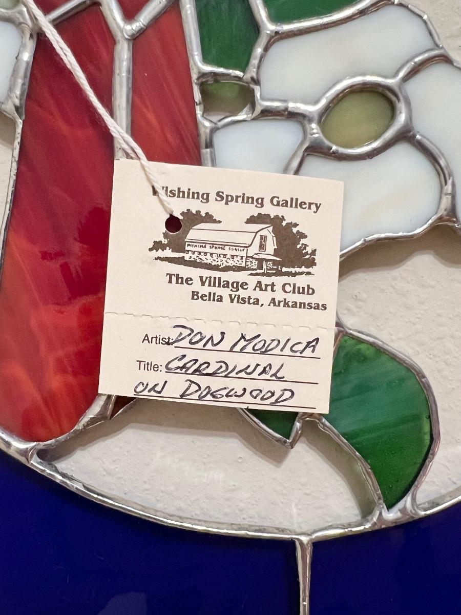 DON MODICA ~ “Cardinal On Dogwood” ~ Stained Glass Window Decor
