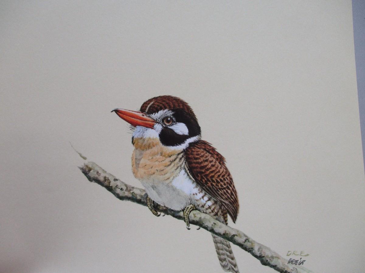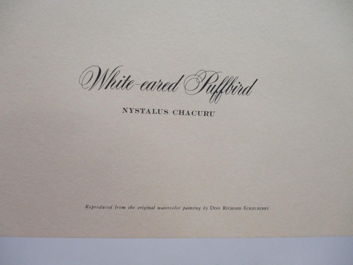 Don Richard Eckelberry Signed  "White Eared Puffbird" 1968