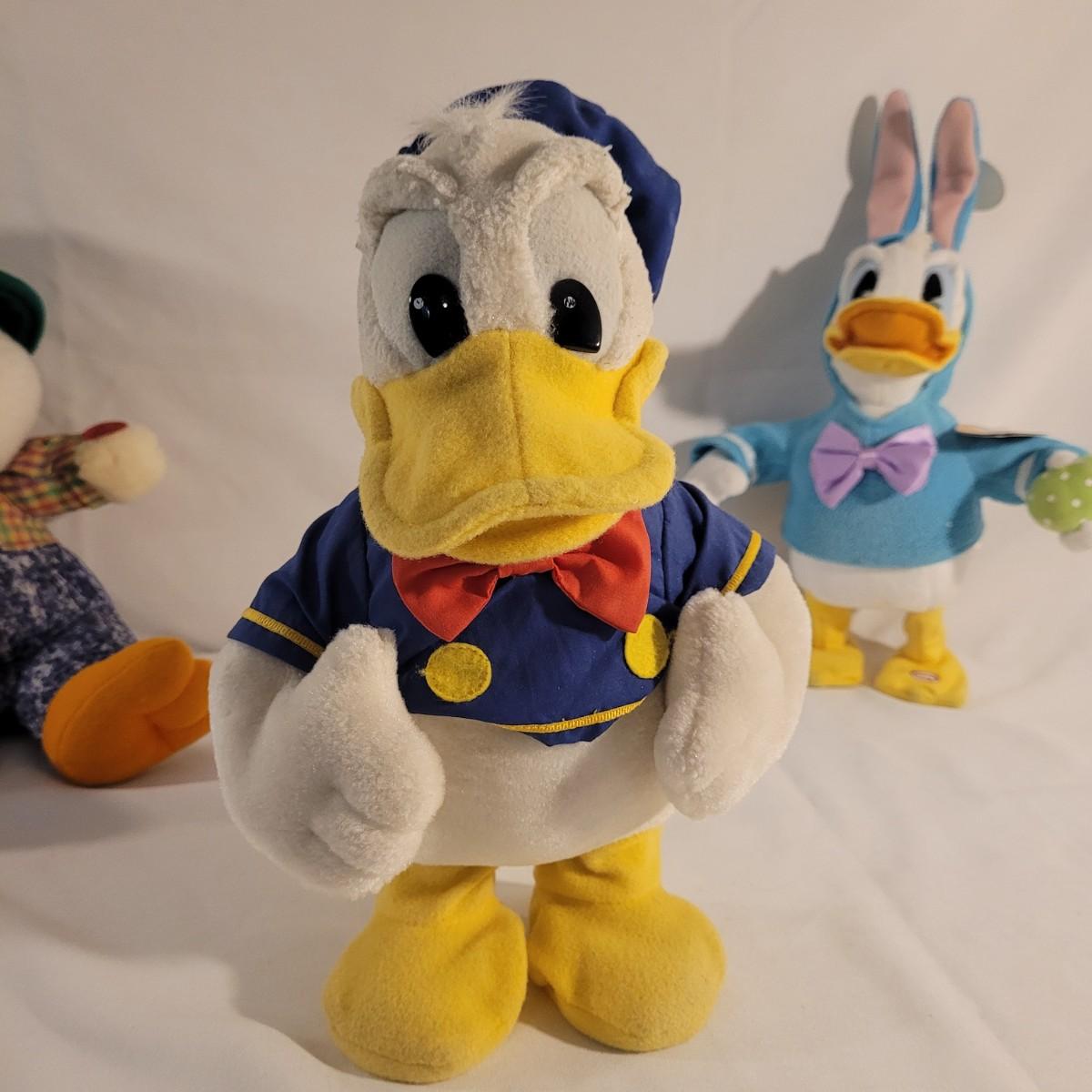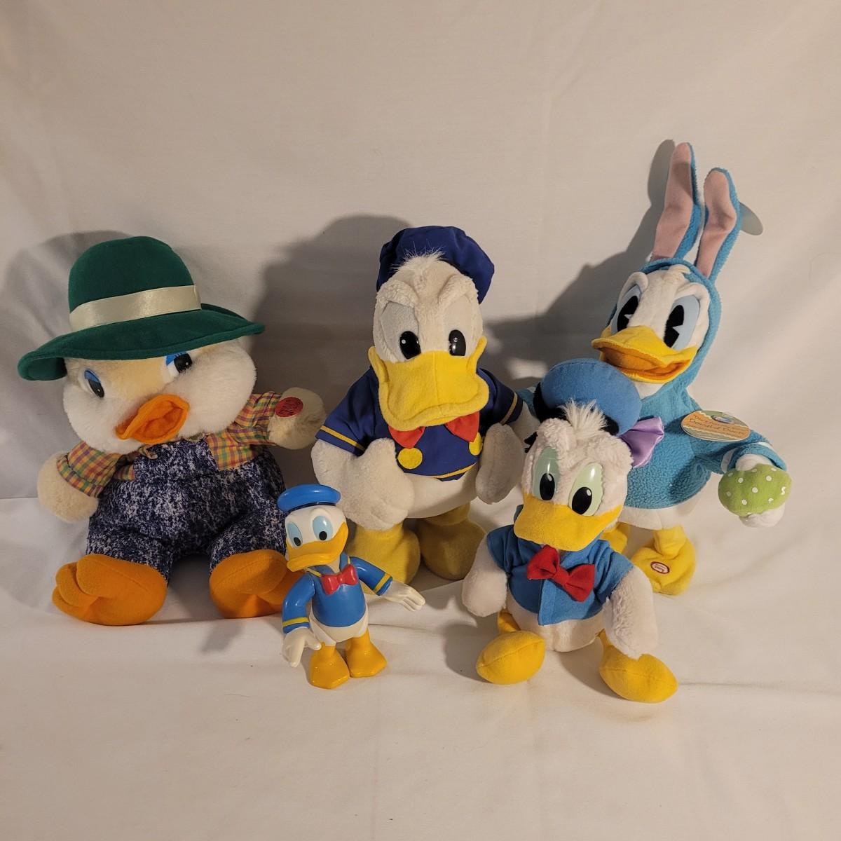 This collection of Donald Duck and Mac Duck toys includes mechanical battery operated toys (not tested) and more. Tallest toy measures 10” x 7” x 15”H.