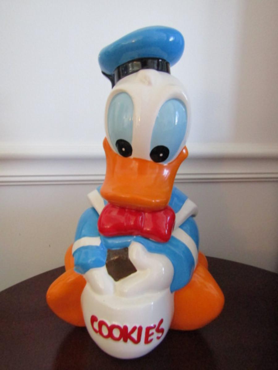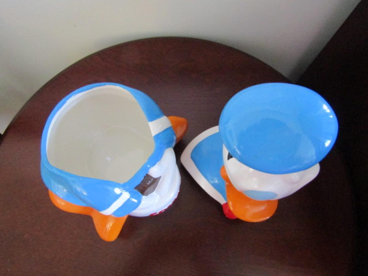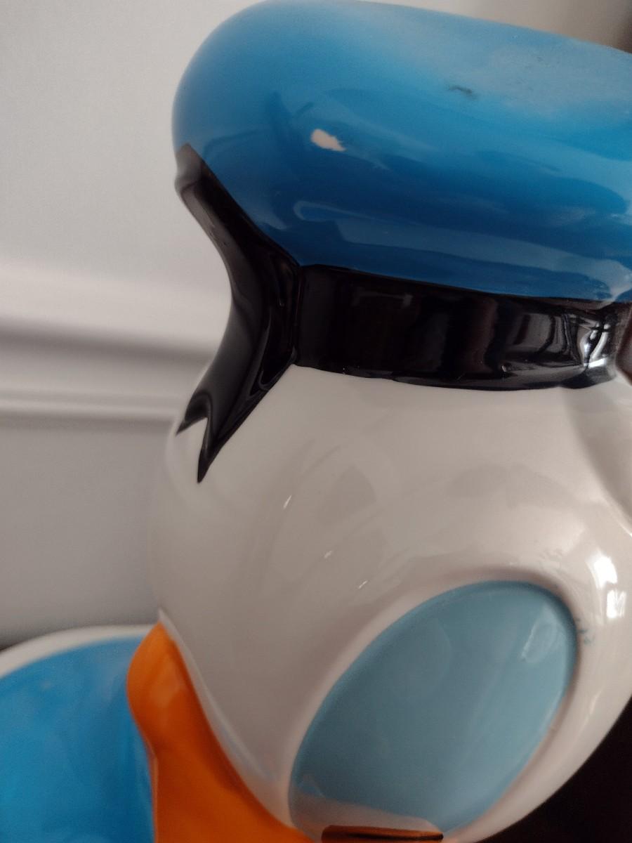 Donald Duck Cookie Jar by Hoan LTD. There are a couple of very small places with missing paint - please see pictures.