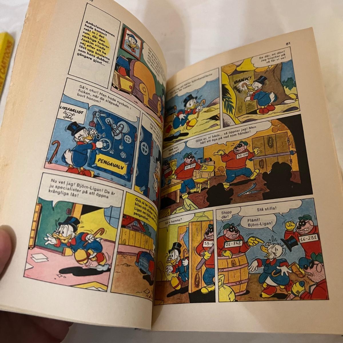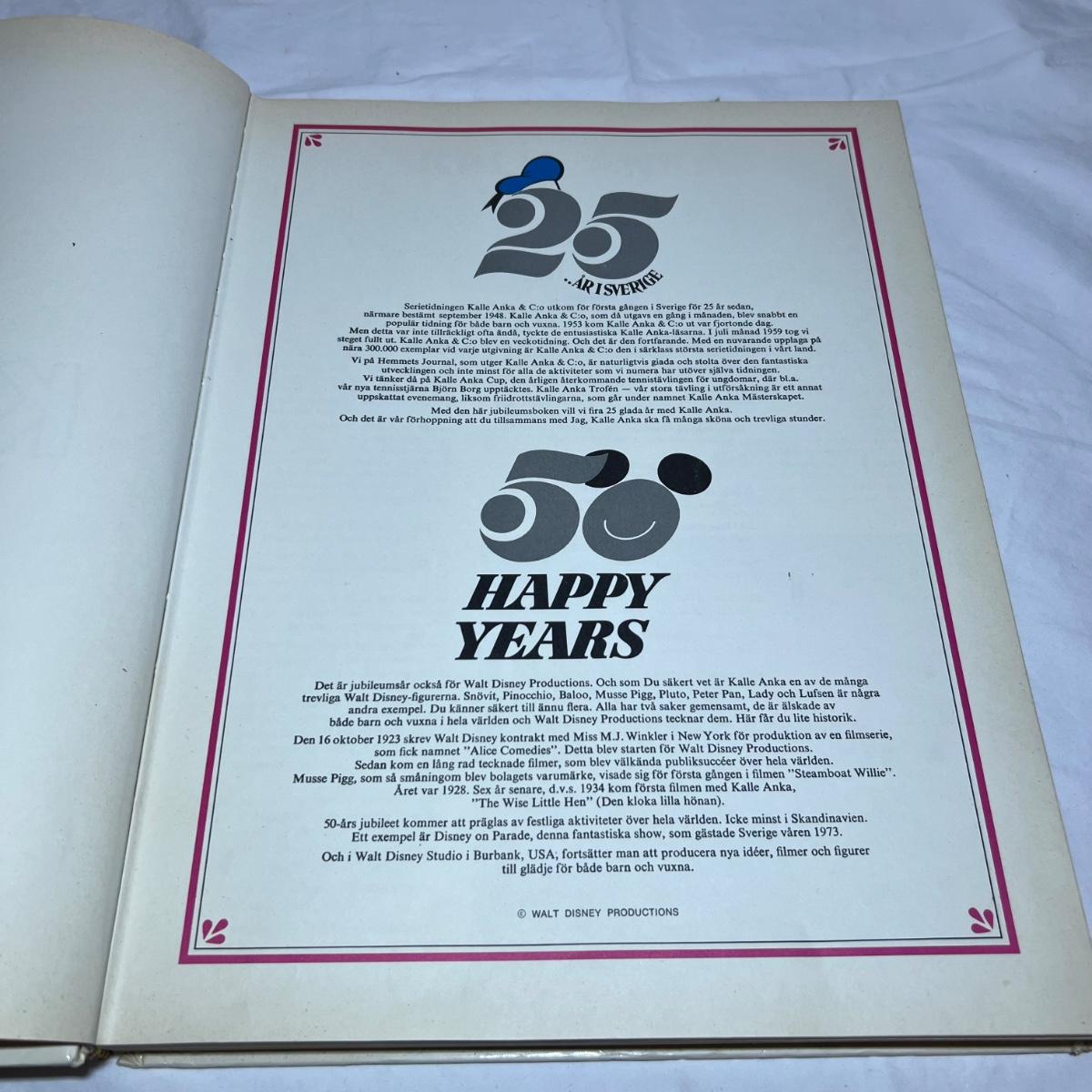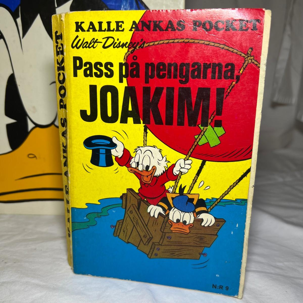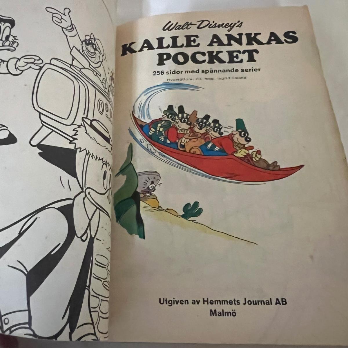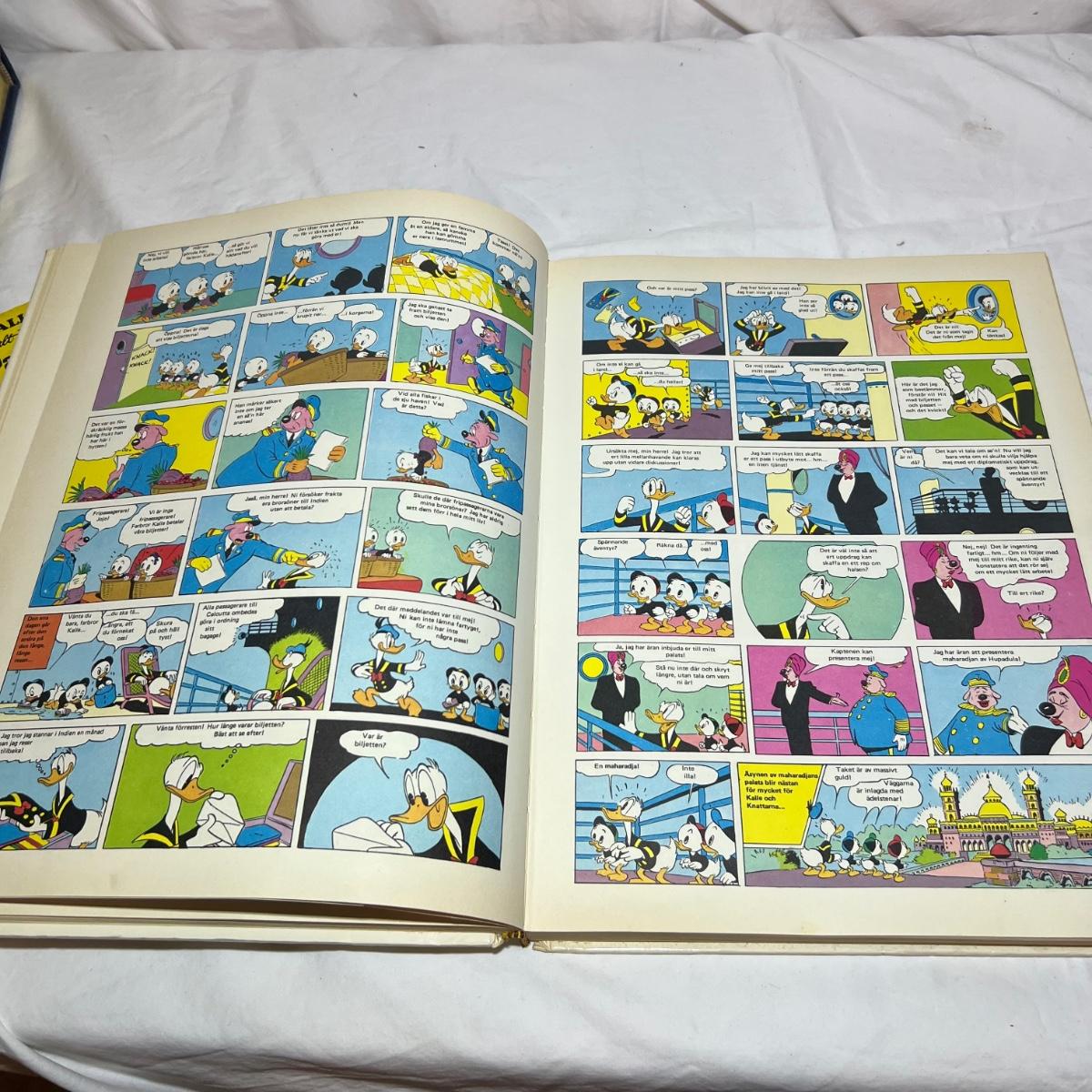 Three Walt Disney ‘Donald Duck’ vintage collectibles. The large hardback book and the paperback appear to be Swedish; see images for condition. The 8mm film has both English and Swedish writing on its case, so we are unsure what language it is in.