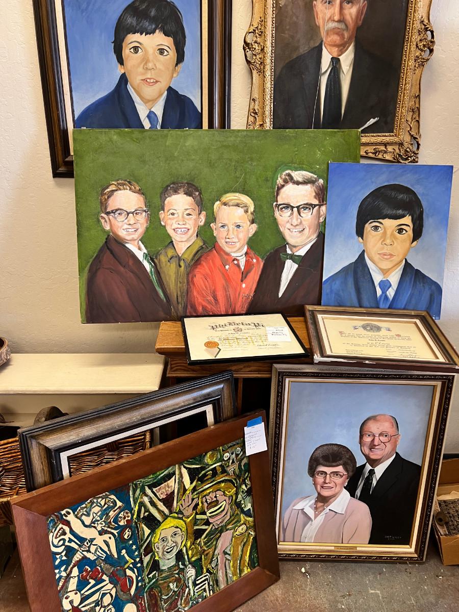 I have collected these oil paintings over the years, perhaps due to my memories of having paintings made from photos of my brothers and I in the 1970s. the clown oil is by artist Donald Seeley, so if you share my kitschy fascination please bid! I will ship, as there is no glass , but please be aware that it will be very expensive and there will be an additional $25.00 fee, for special box construction as well as postage.