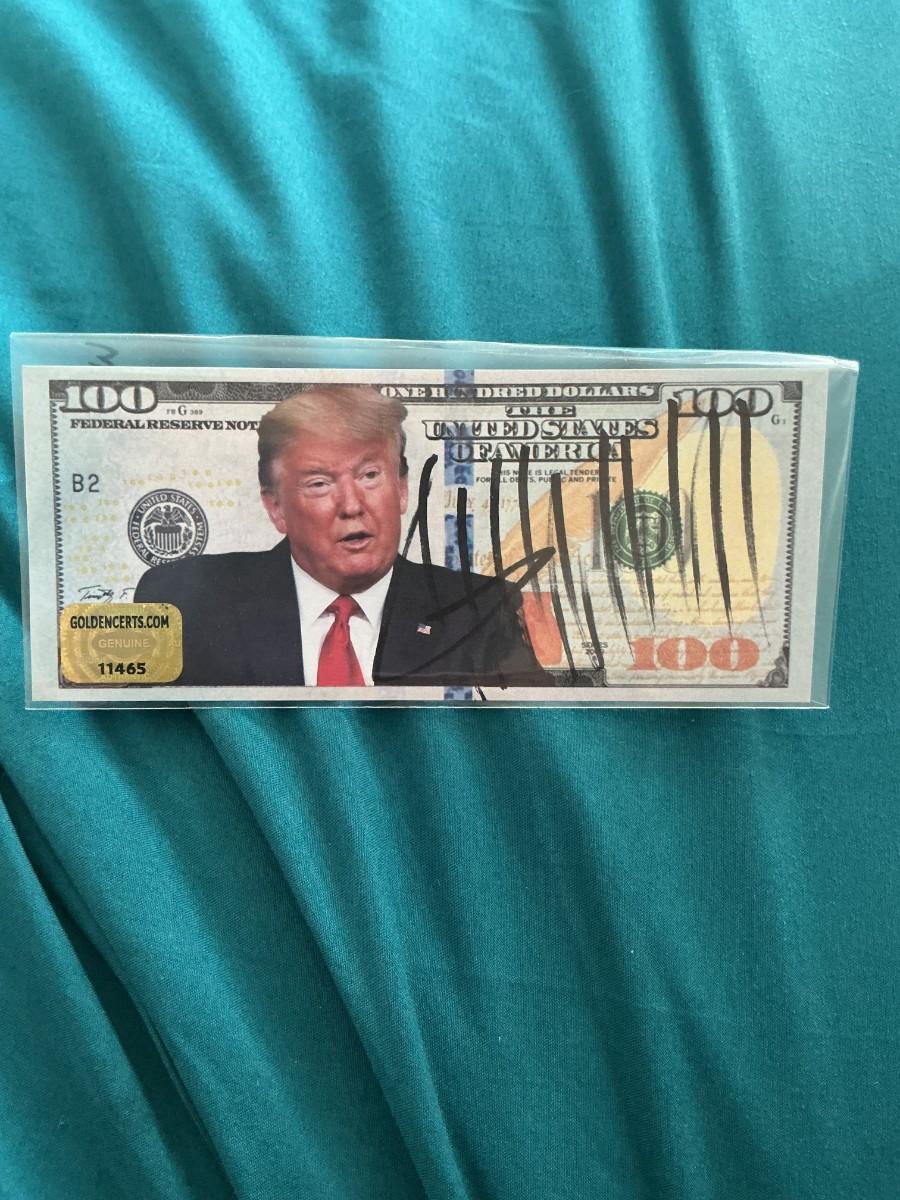 For sale (shipping accepted only, no pickup) Donald Trump Hand Signed Autographed Novelty $100 Bill W/COA.