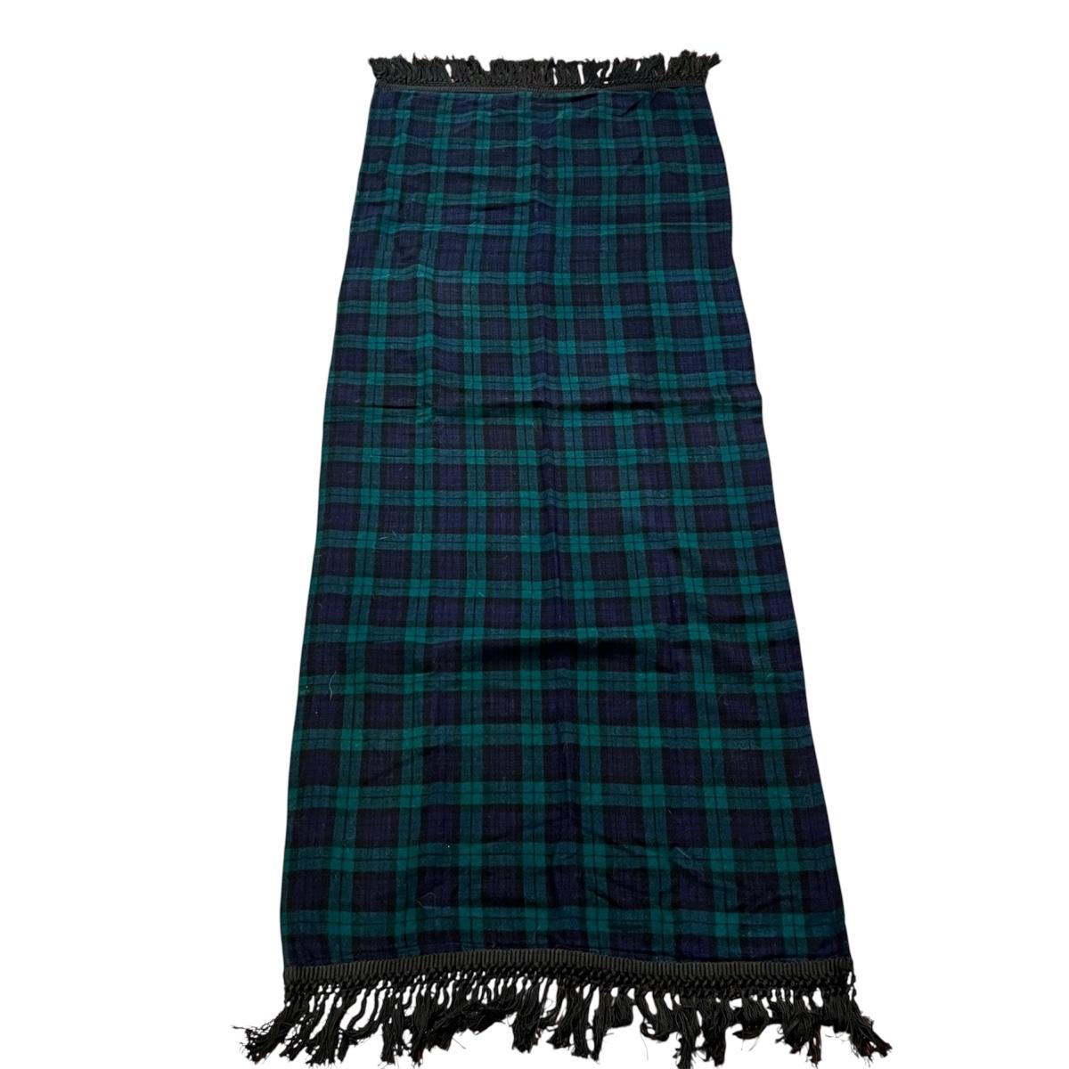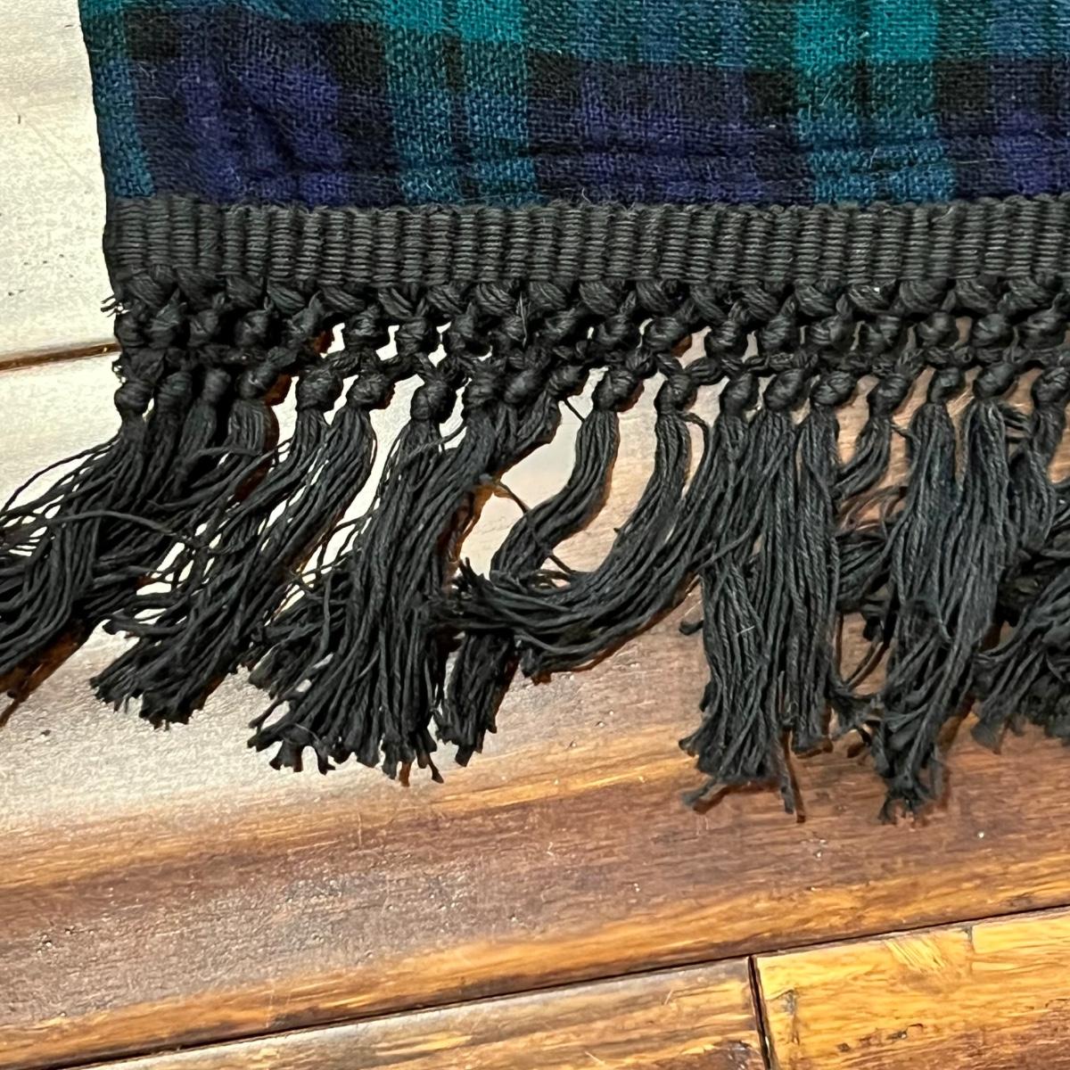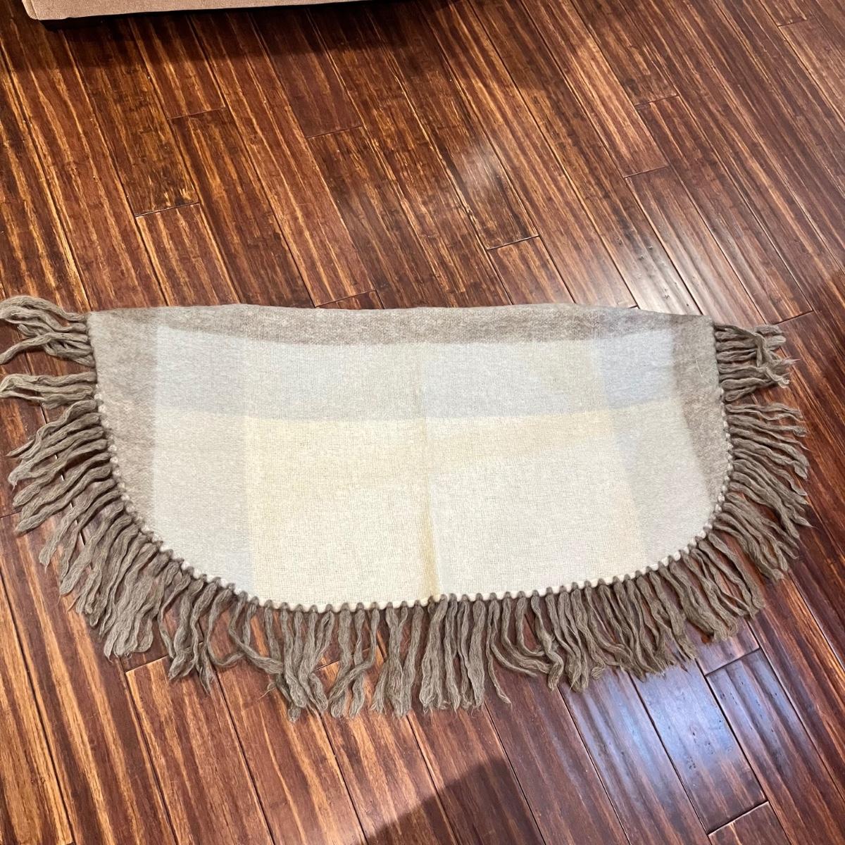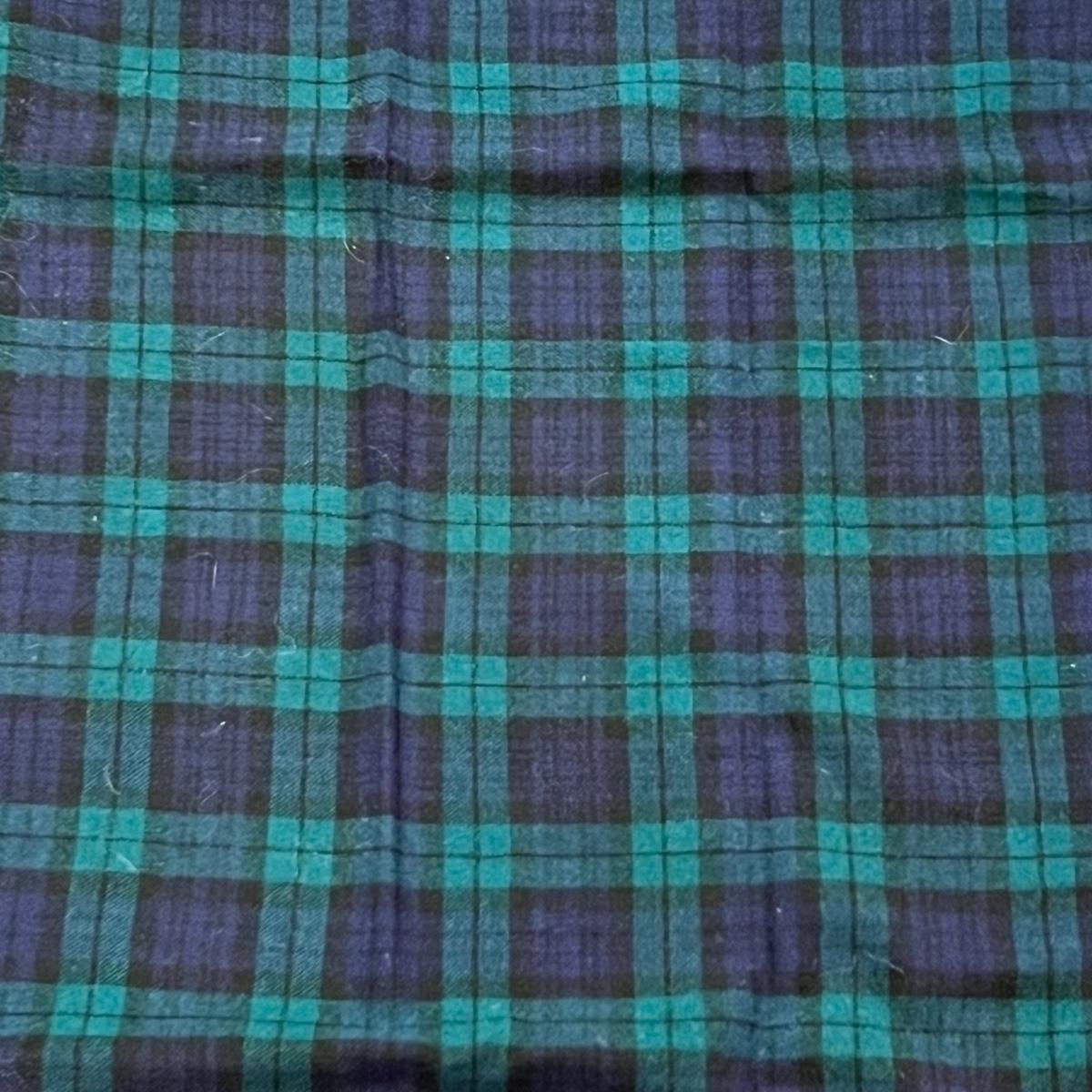 Three wool blankets. One of the three does not have a label, this is the blue tartan blanket; it appears to be wool and it also has a black lining. See photos for labels.