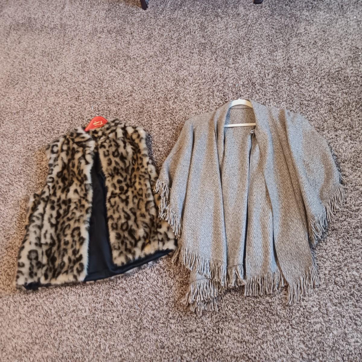DONNA SALYERS FABULOUS FURS VEST AND WOOL CAPE (L)