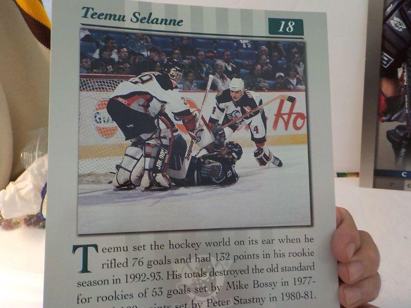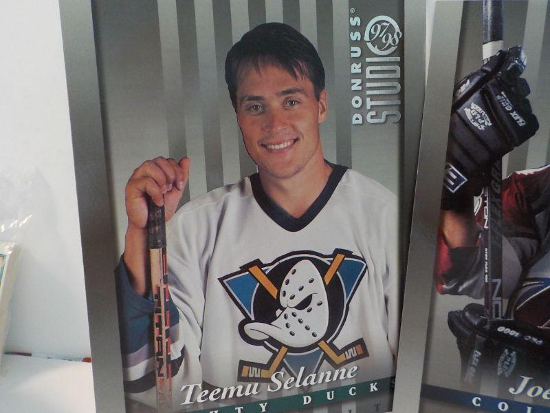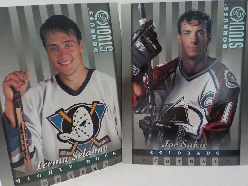 Donruss 97 Hockey hero's Teemu Selanne and Joe Sakie.