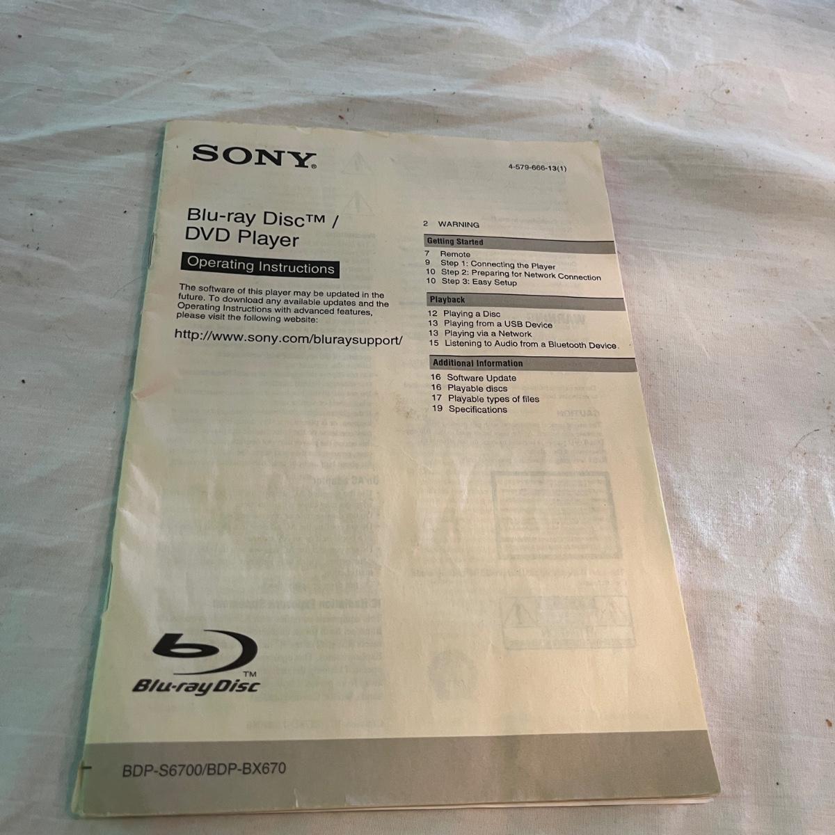 Lot includes a Sony 4K UHD Blue-Ray player/DVD player with remote and owners manual. Remote had no batteries so was not tested.
