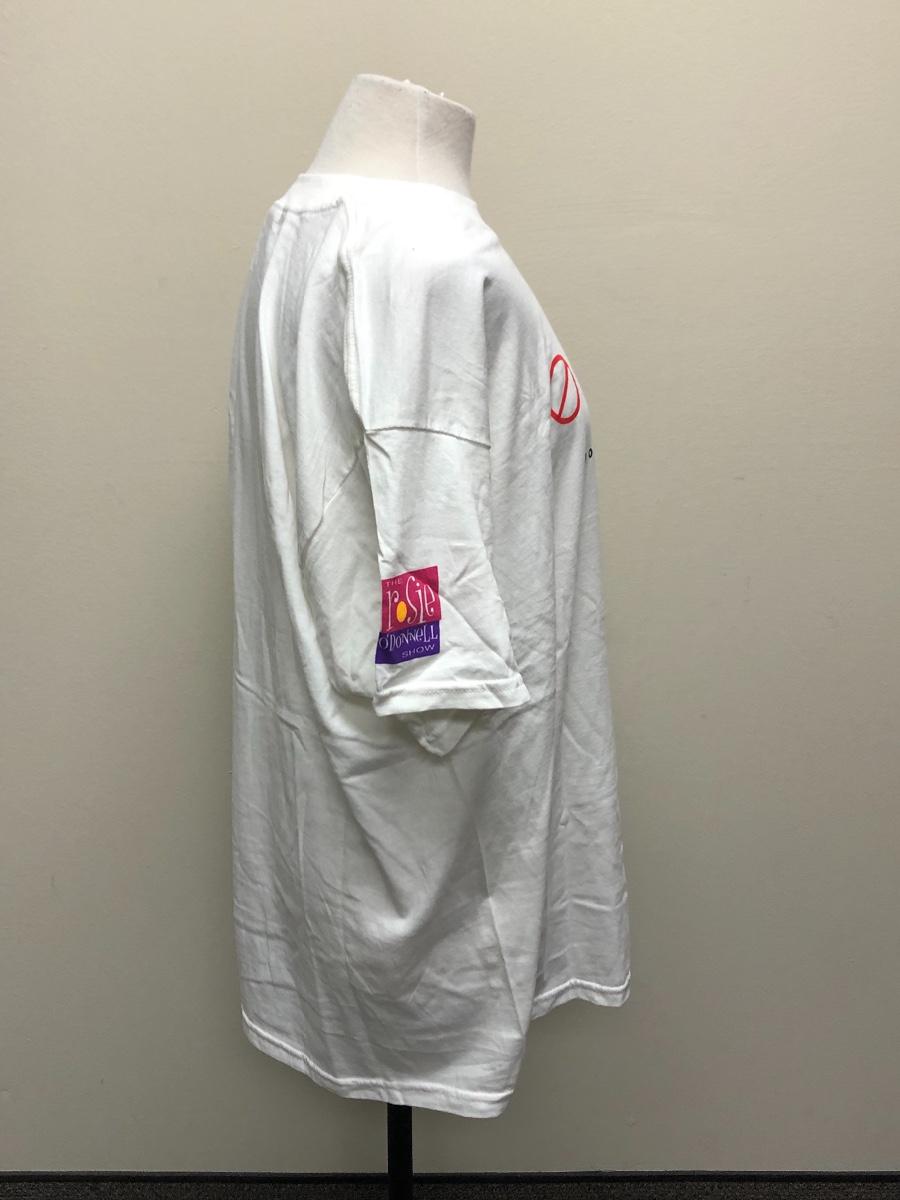 Front of the shirt reads : “Don’t be a Boob.” Sleeve of the shirt says “ The Rosie O’Donnell show.” Shirt comes in a size XL and is made with 100% cotton.