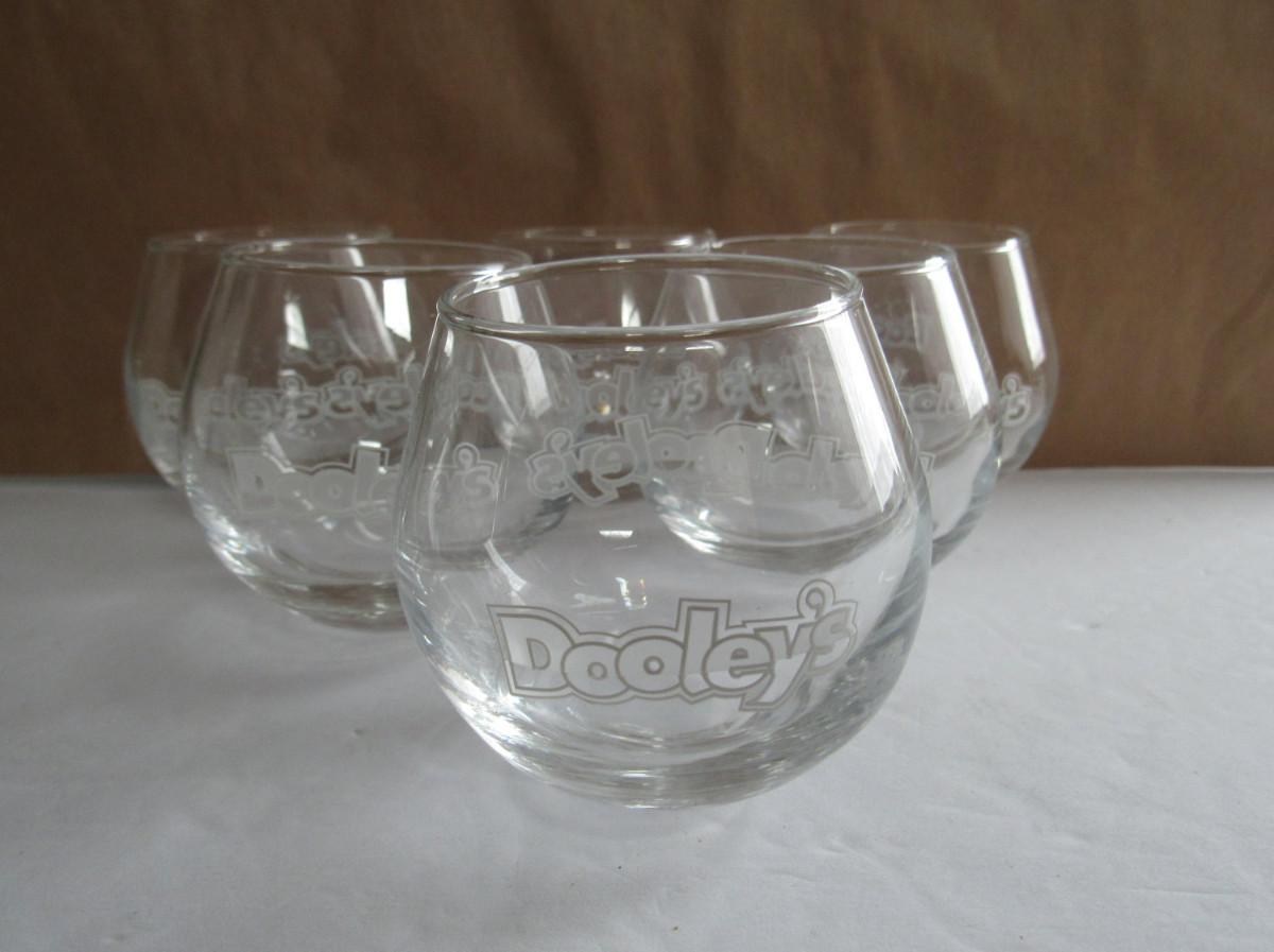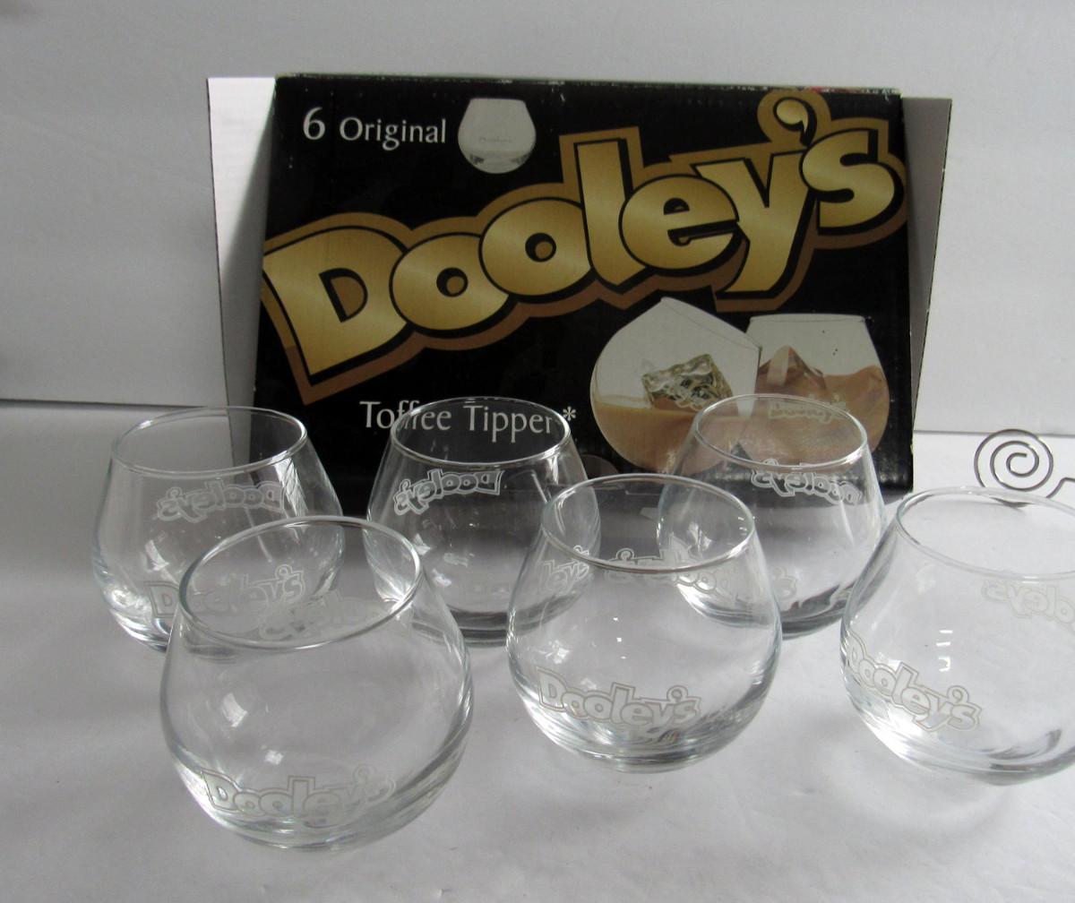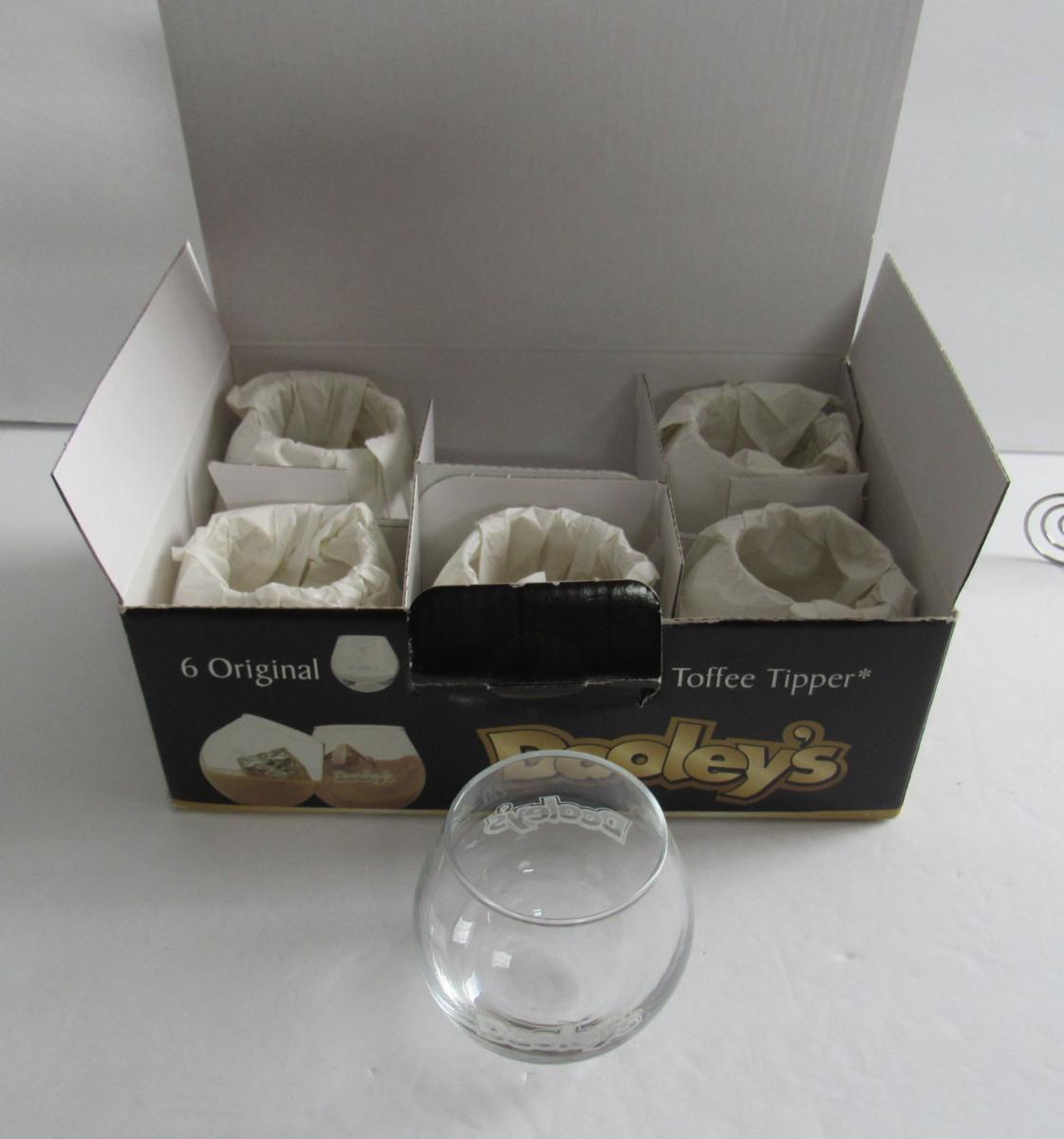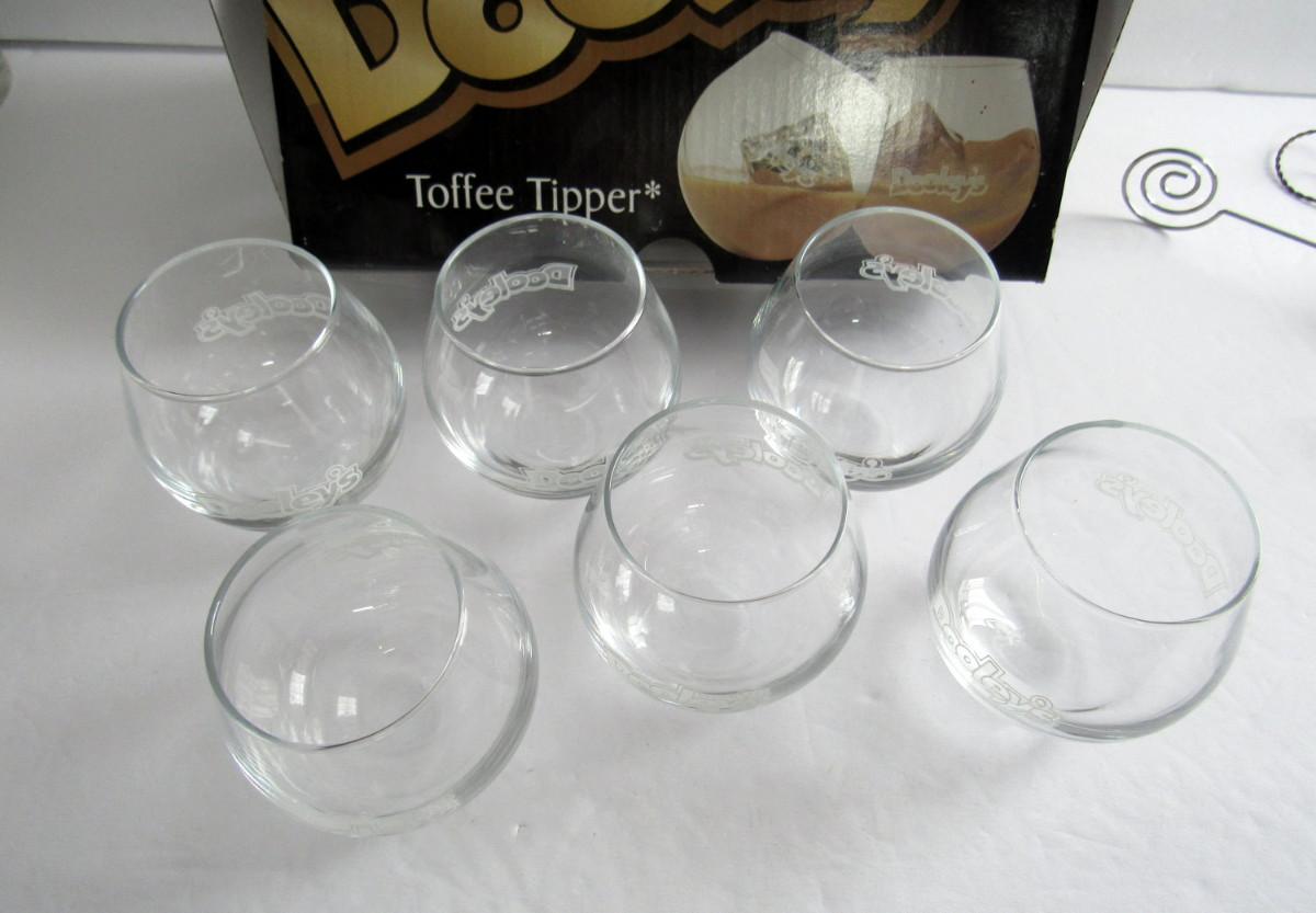 Dooley's Toffee Tipper Wobble Bar Glasses in Original Box, Never Used