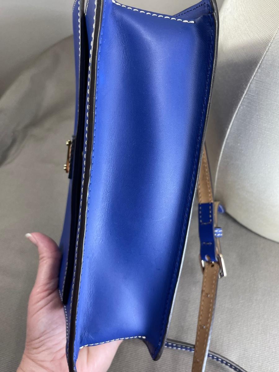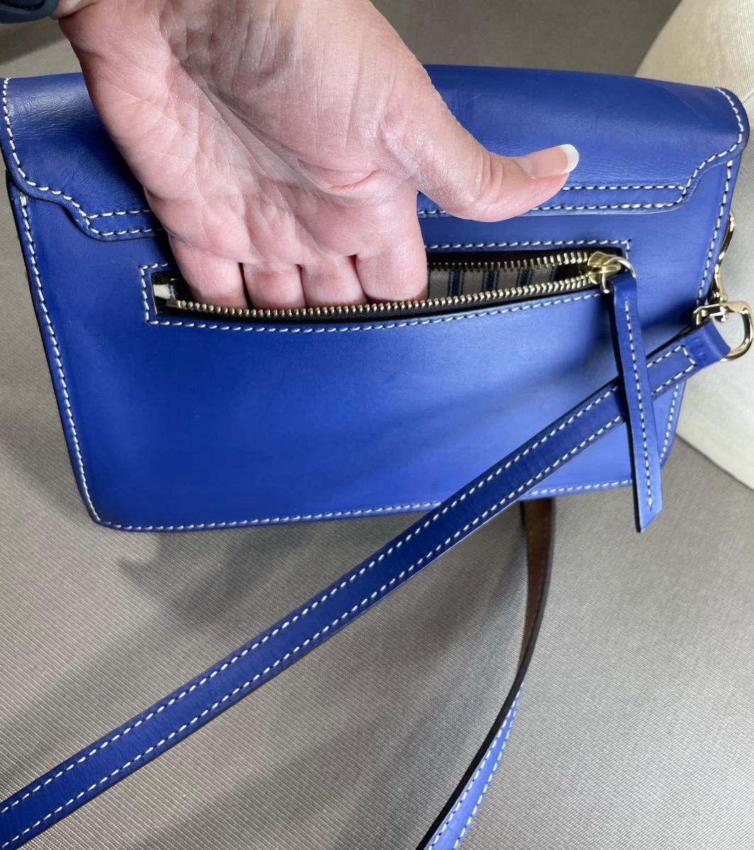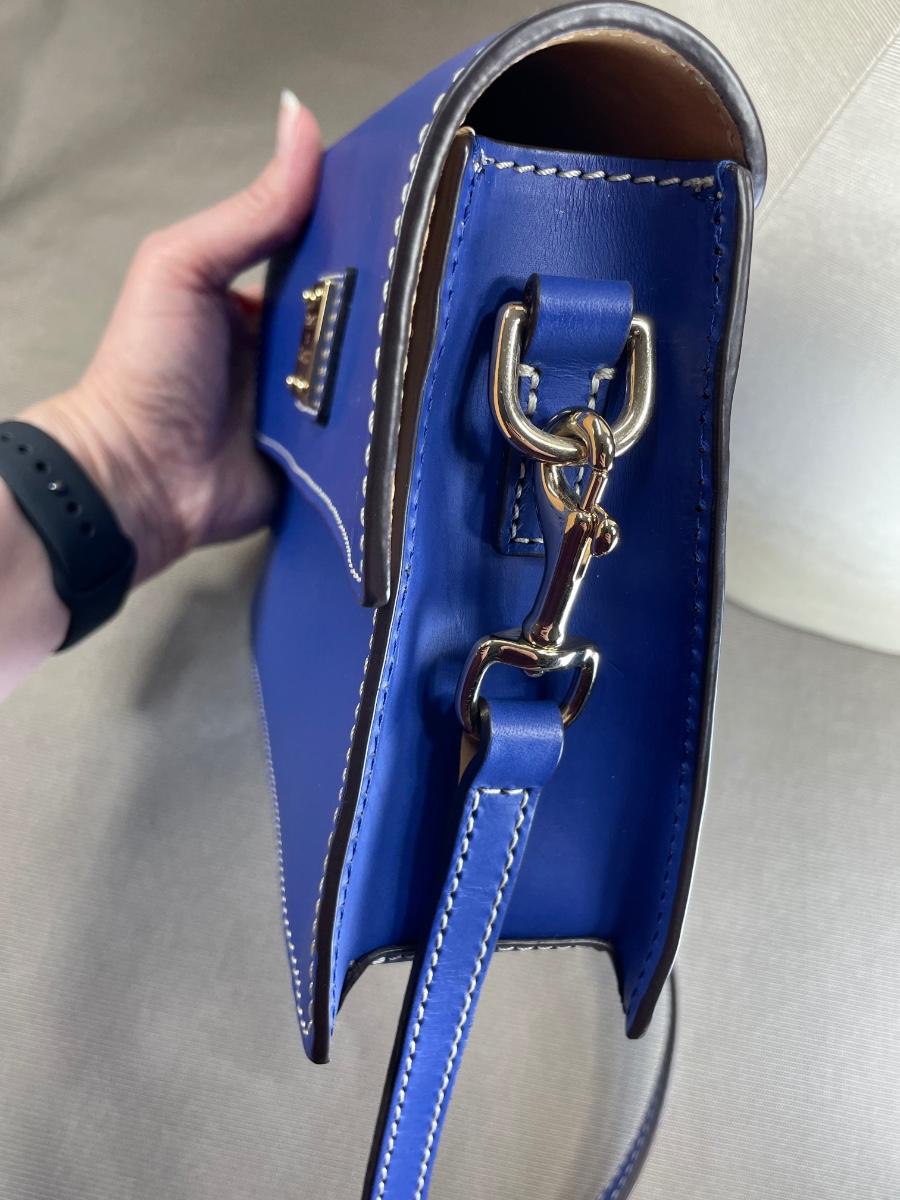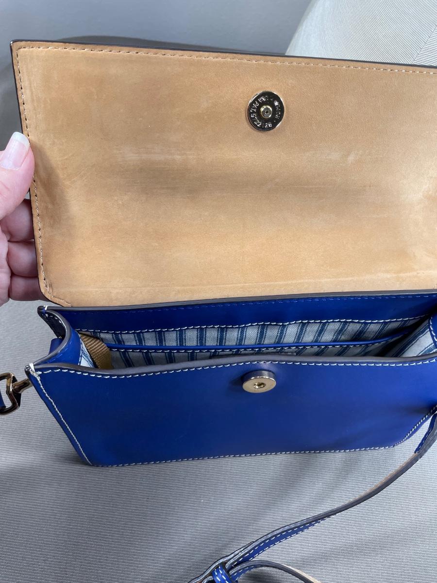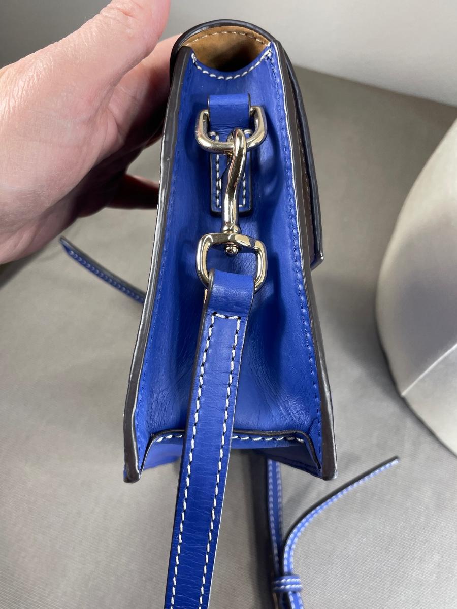 Cobalt blue all leather exterior. 9” by 6.5” in excellent condition.