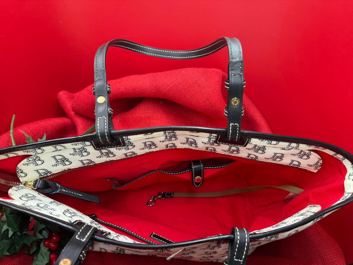 Zip closure, large shoulder tote bag made of durable coated canvas.