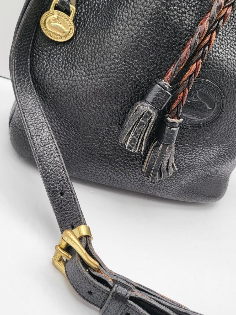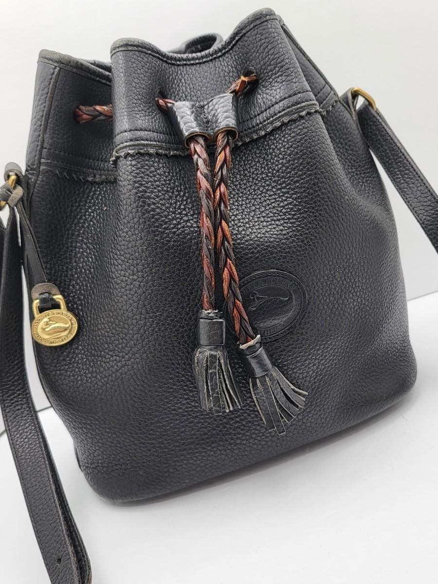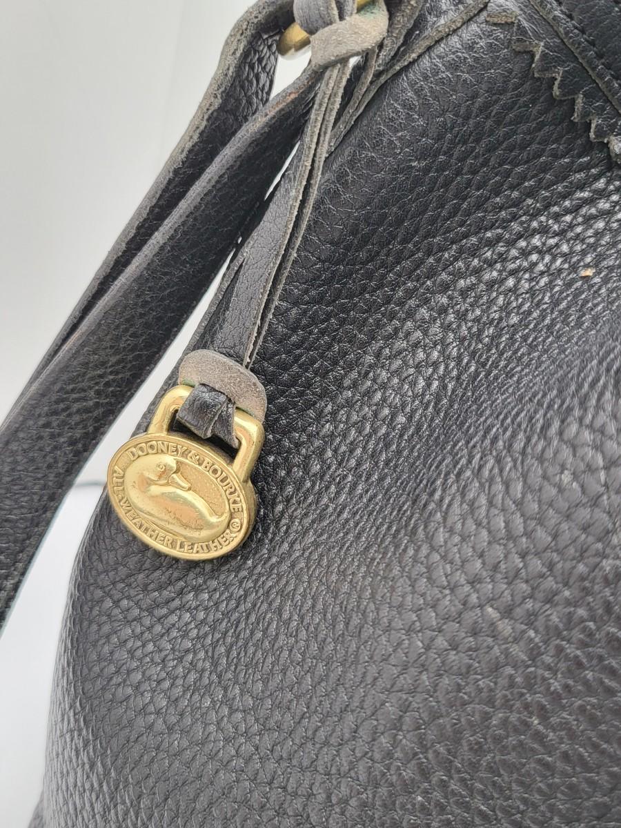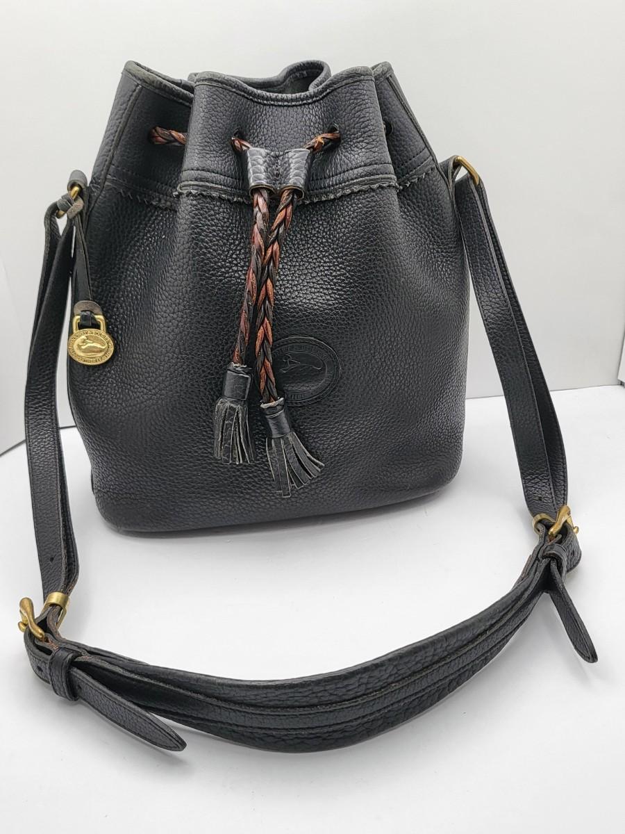 Dooney & Bourke Pebbled Black Leather Drawstring Bag