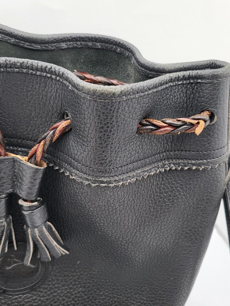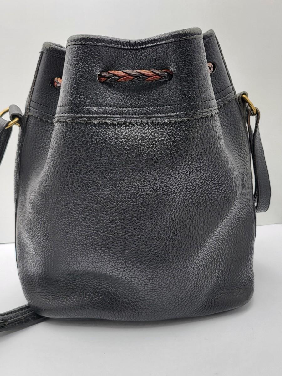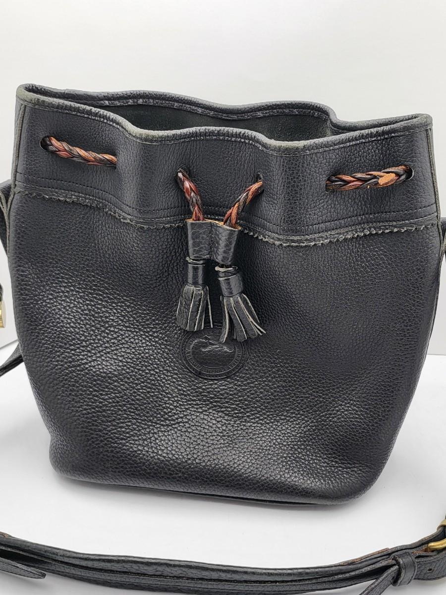 Dooney& Bourke bucket drawstring pebbled black leather bag, 9" x 10.5" x 5".