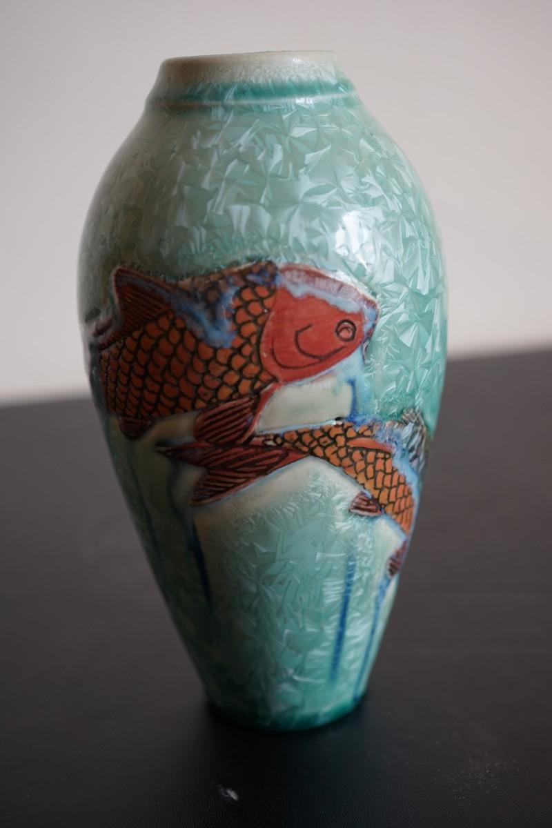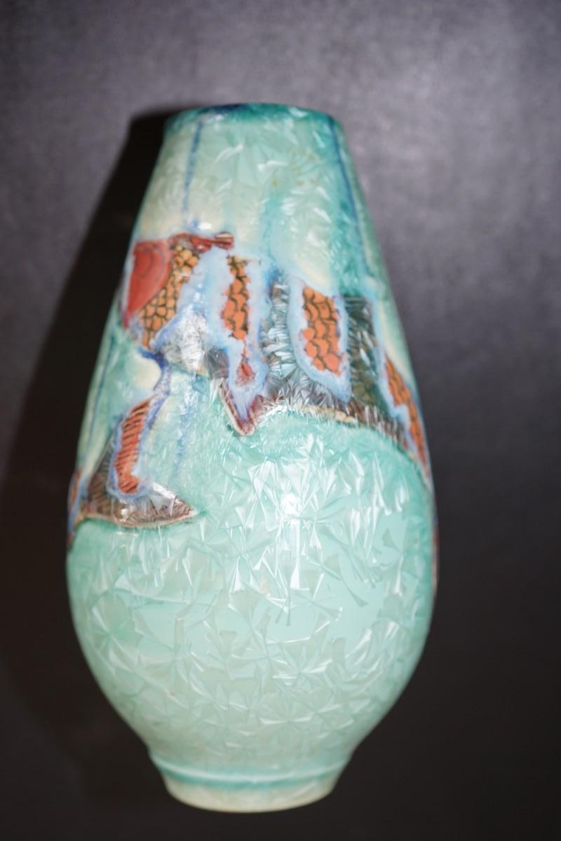 DOOR POTTERY CRYSTILLINE VASE ARTIST SIGNED.