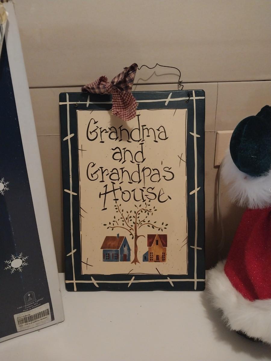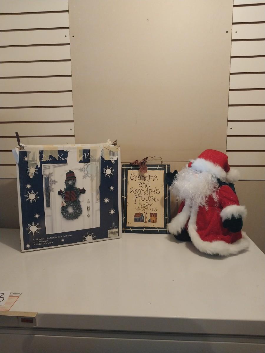 DOOR SNOWMAN WREATH-SANTA FIGURE AND WOODEN SIGN "GRANDMA & GRANDPA HOUSE"