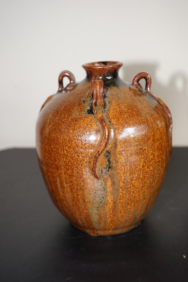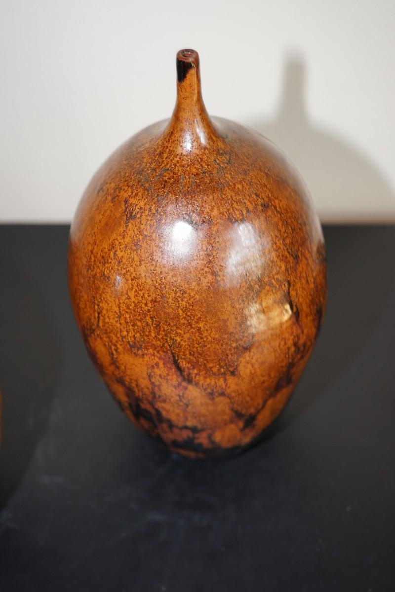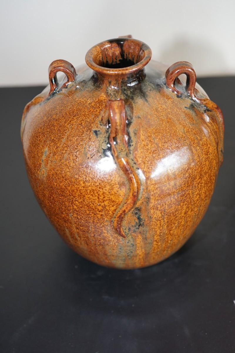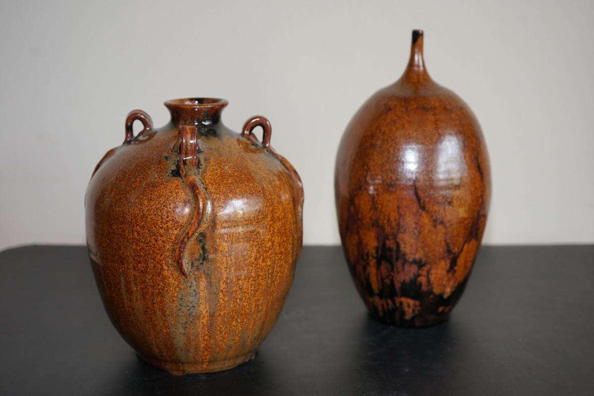 You would really appreciate these two unique quality crafted pots. The glaze is a rich tone of browns, rust tones. will not disappoint.